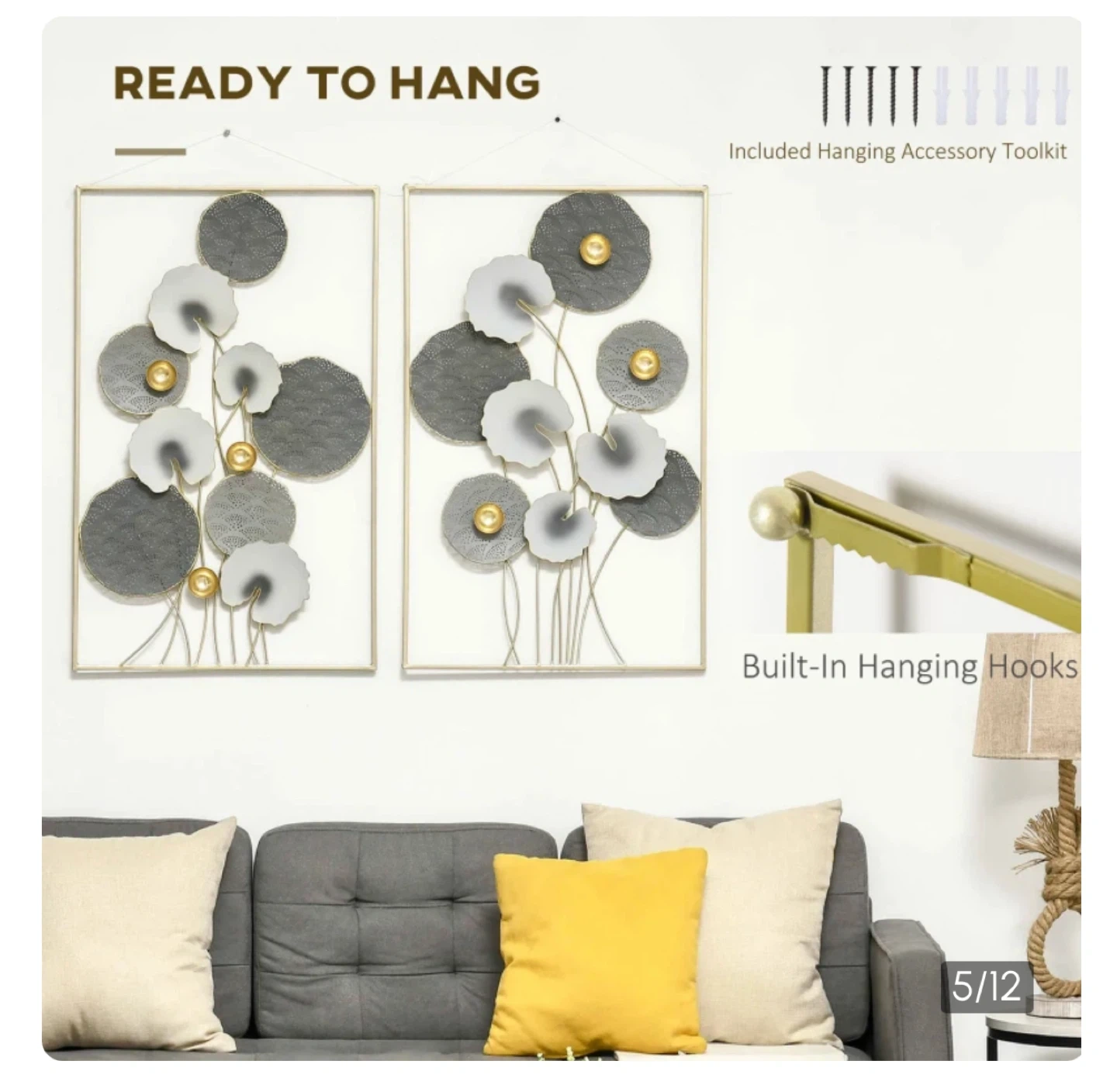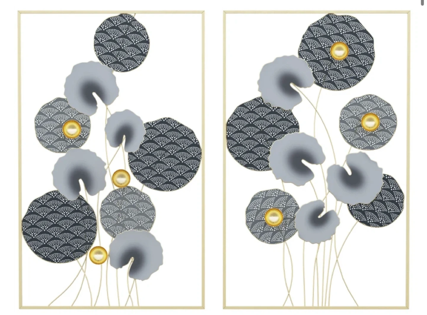 Add a touch of elegance to your home with this beautiful metal wall art! It features a lovely floral design with three-dimensional shapes. It's ready to hang with a built-in hanging hook and includes a hanging accessory toolkit. Each panel is approximately 50cm wide, perfect for adding a stylish accent to any room