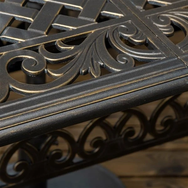 This is a beautiful cast aluminum outdoor patio dining chair. It features a woven seat design and decorative back. The chair's dimensions are approximately 35.8 inches (91cm) in height, 26.4 inches (67cm) in depth, and 26 inches (66cm) in width. The seat dimensions are approximately 16.1 inches (41cm) by 18.1 inches (46cm), and the seat height is 15.7 inches (40cm) 2 chairs