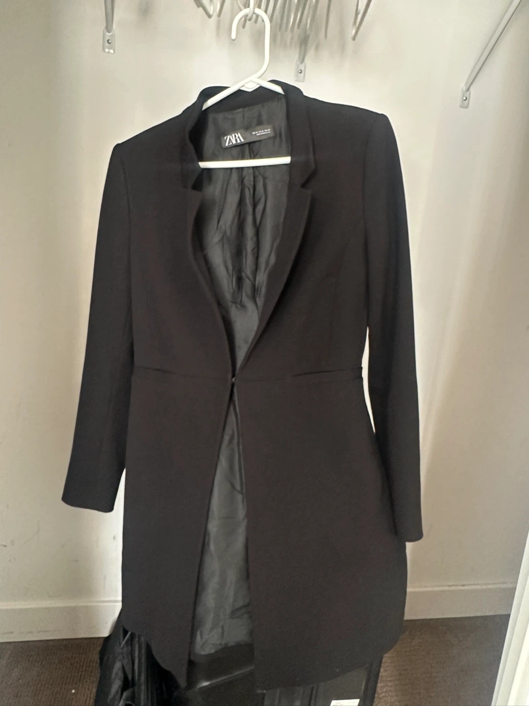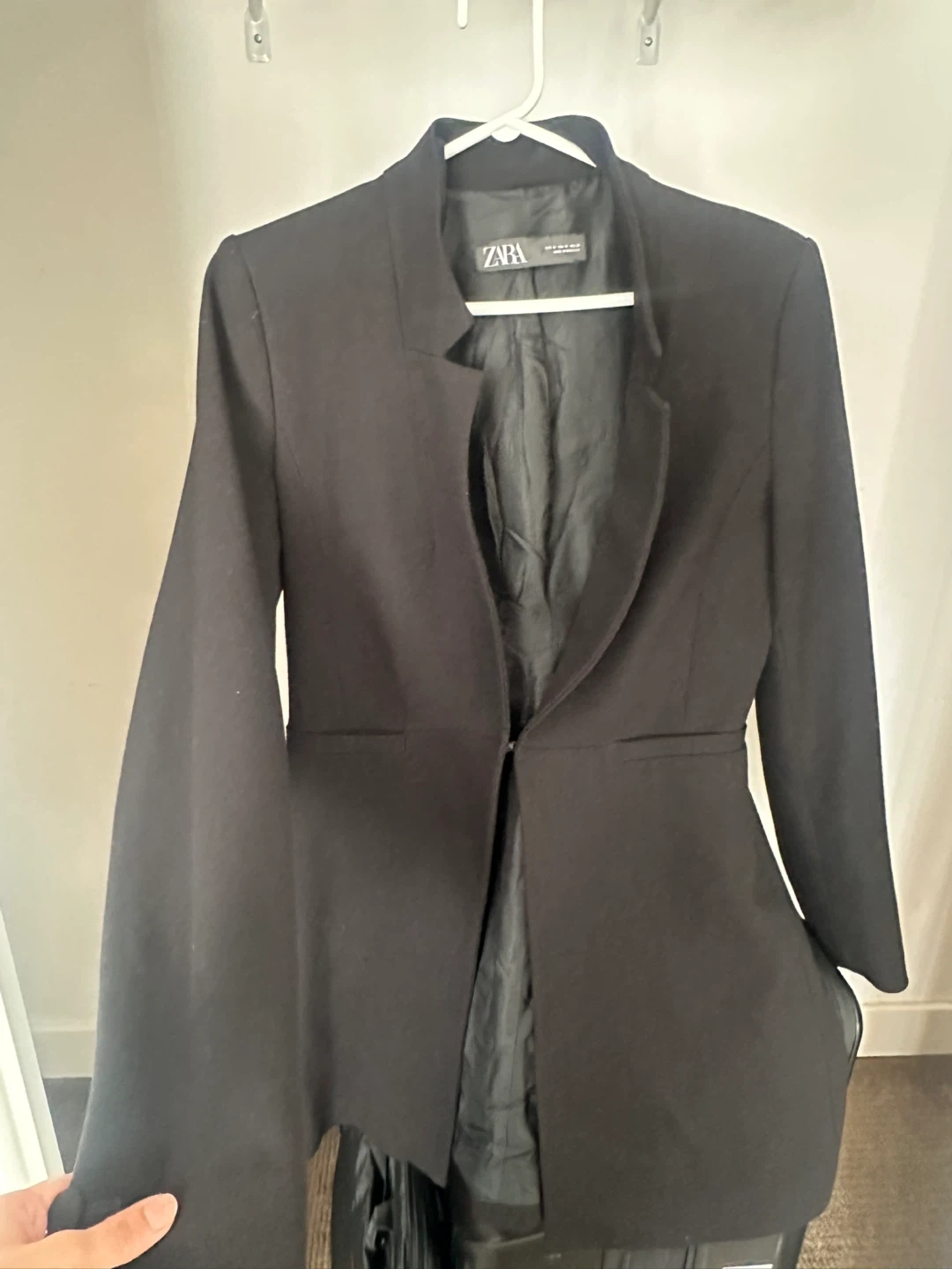 90Selling a Zara black blazer in size M. It's in great condition and has a stylish, tailored fit. Perfect for dressing up or down!