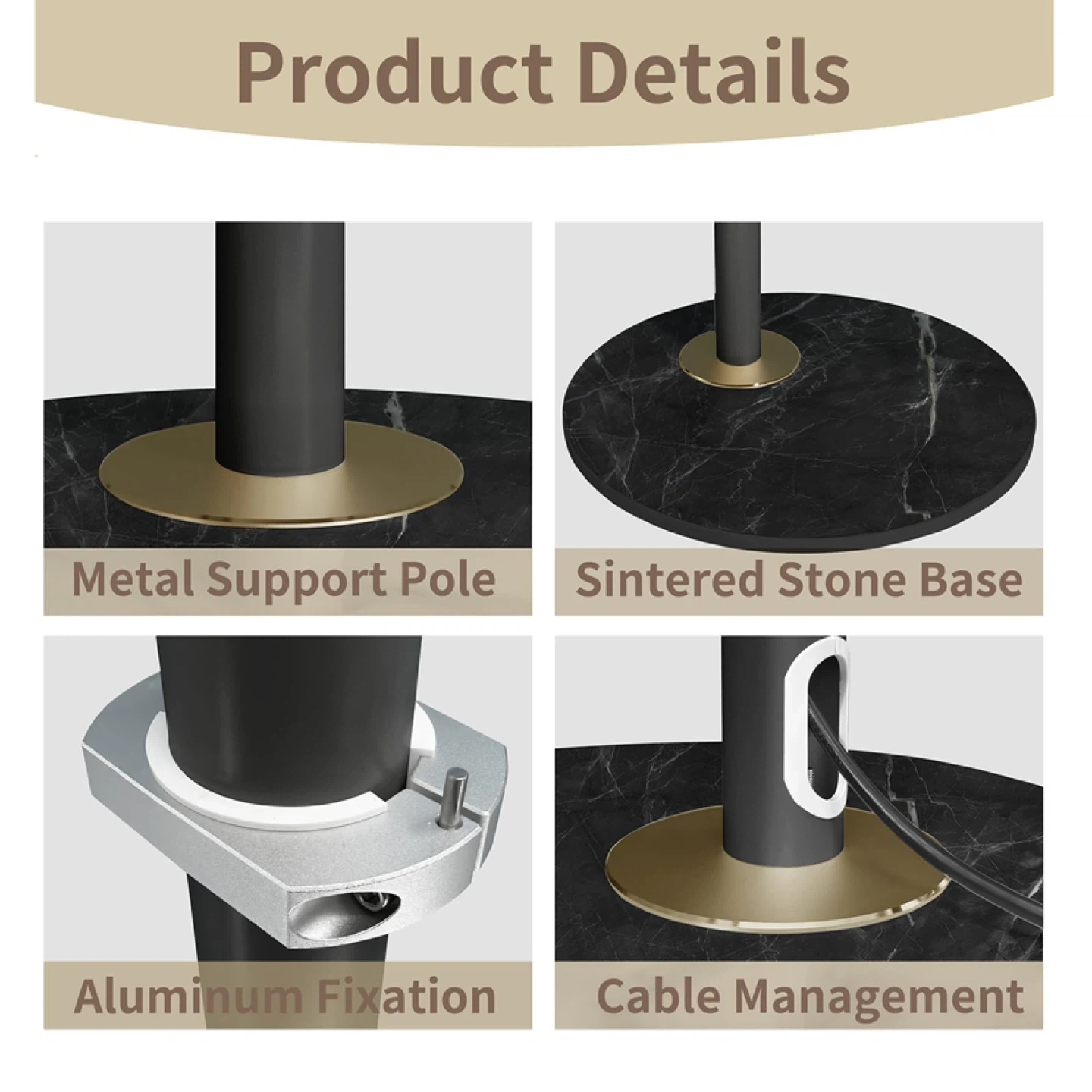 The floor TV stand is expertly designed with a robust steel construction. This substantial build provides reliable and sturdy support for televisions ranging from 40 to 75 inches, accommodating various screen sizes while ensuring stability during use. The stand is engineered to handle a maximum load capacity of up to 88Lbs