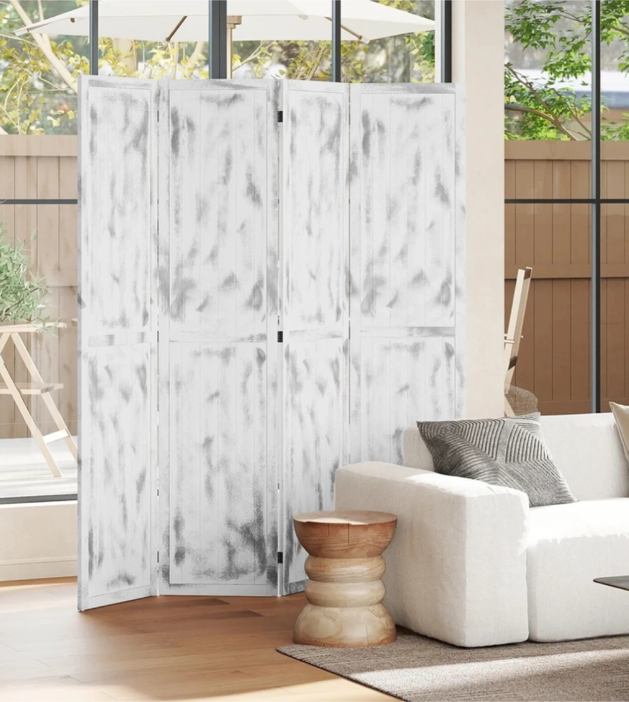 Selling a lovely white wood room divider! It measures 66.9 inches in height and 63.2 inches in width. Perfect for adding a touch of privacy and style to any room in your home.