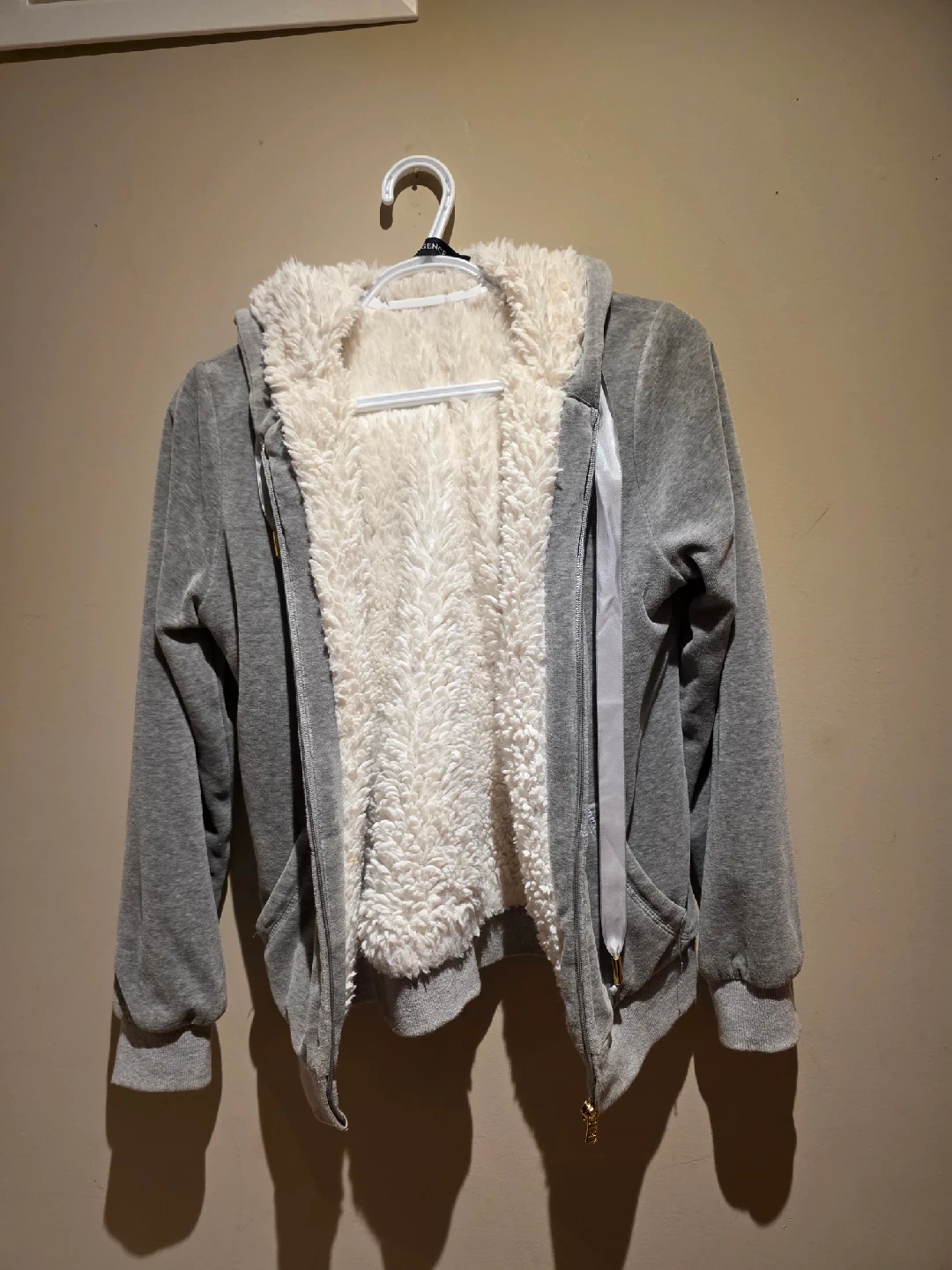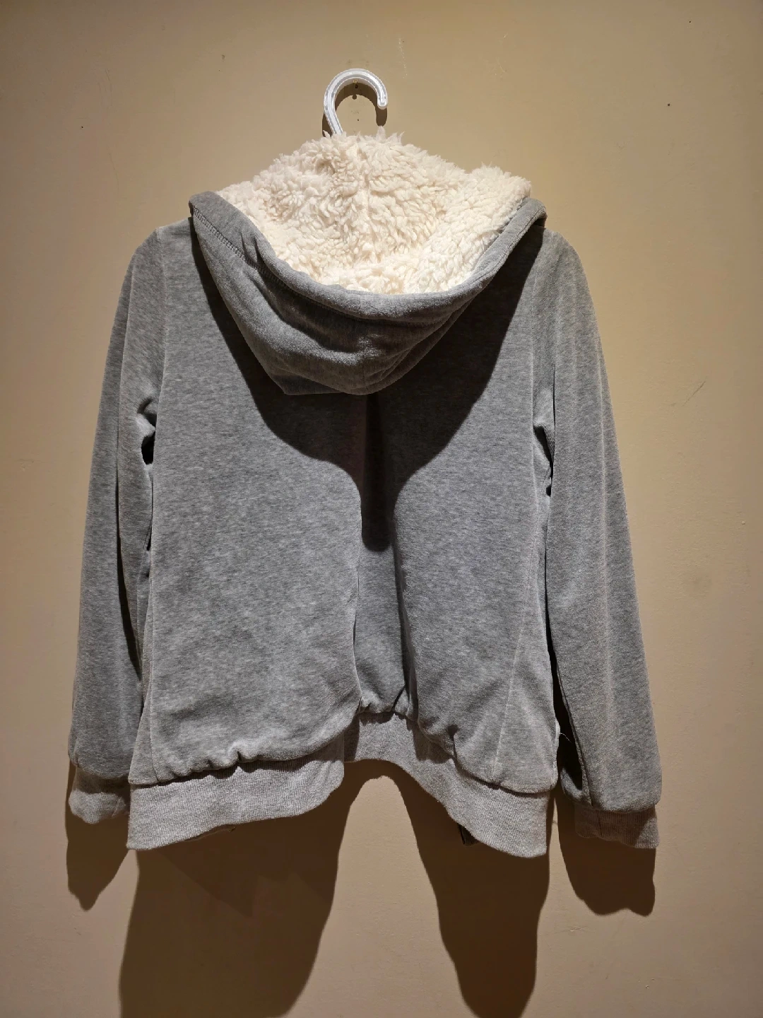 66Cozy up in this grey sherpa-lined hoodie! It's super soft and perfect for those chilly Canadian evenings. The hoodie is in great condition and ready for a new home