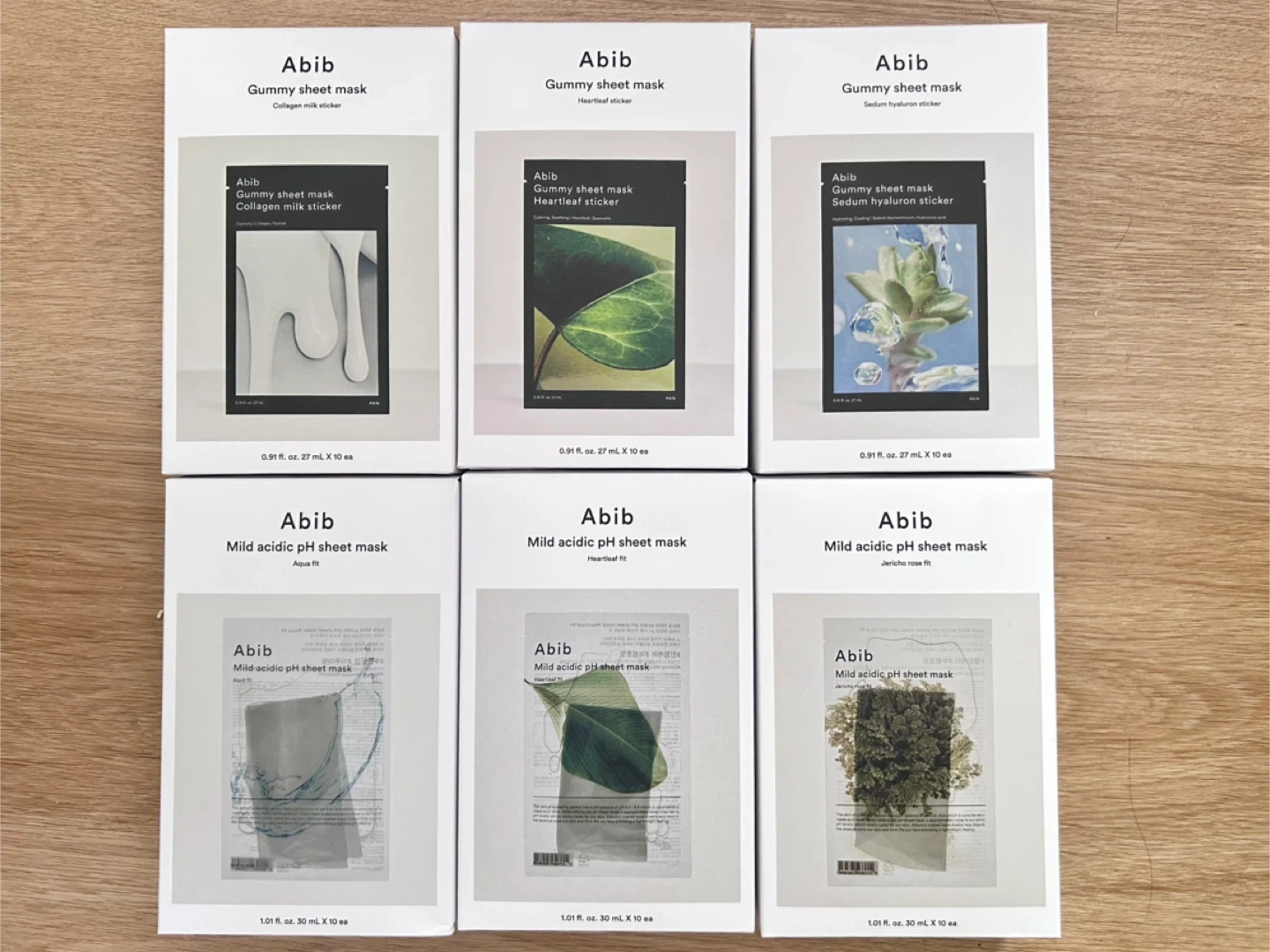 Selling a variety of Abib sheet masks! You'll find both Gummy sheet masks and Mild Acidic pH sheet masks.