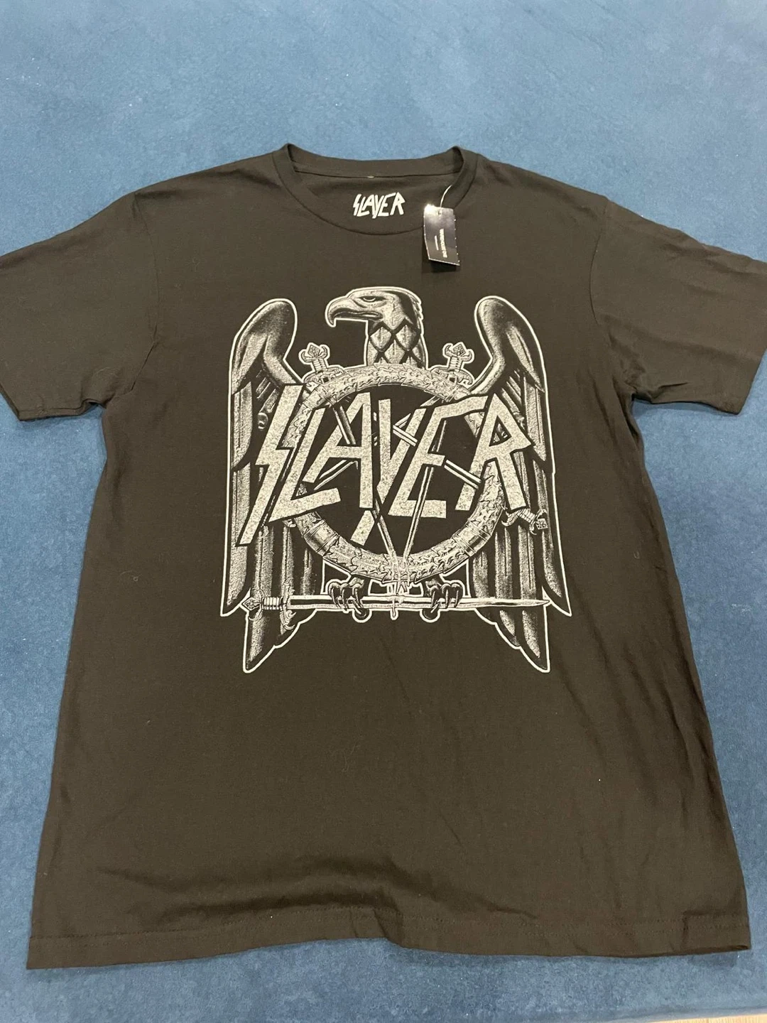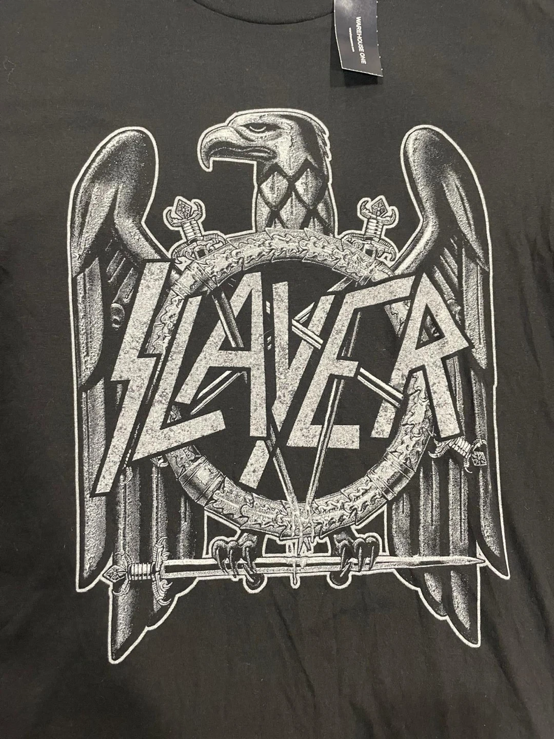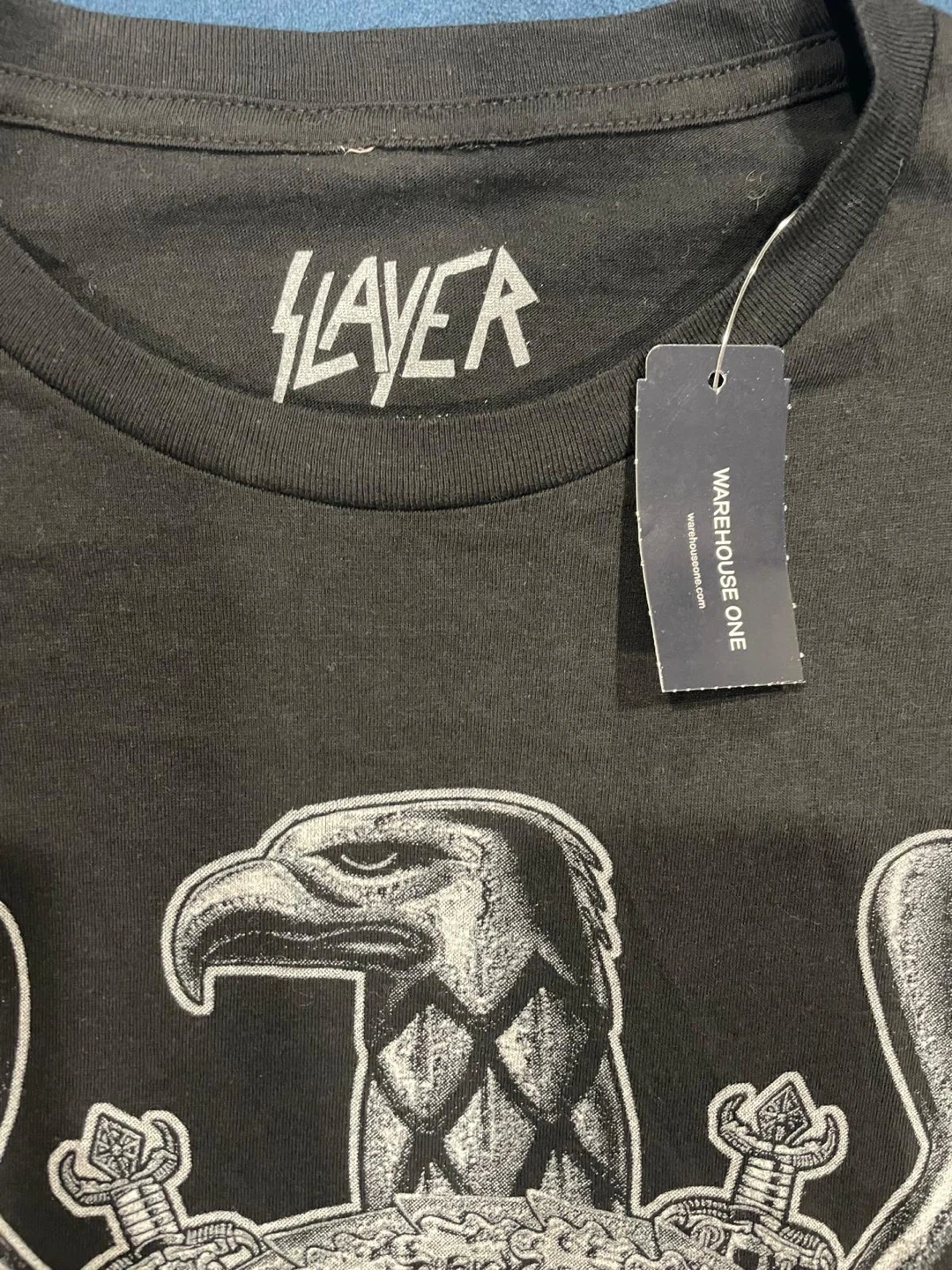 Selling a brand new Slayer graphic tee! This black t-shirt features a cool eagle and sword design. It's a size M/M and made of 100% cotton. Perfect for any Slayer fan!