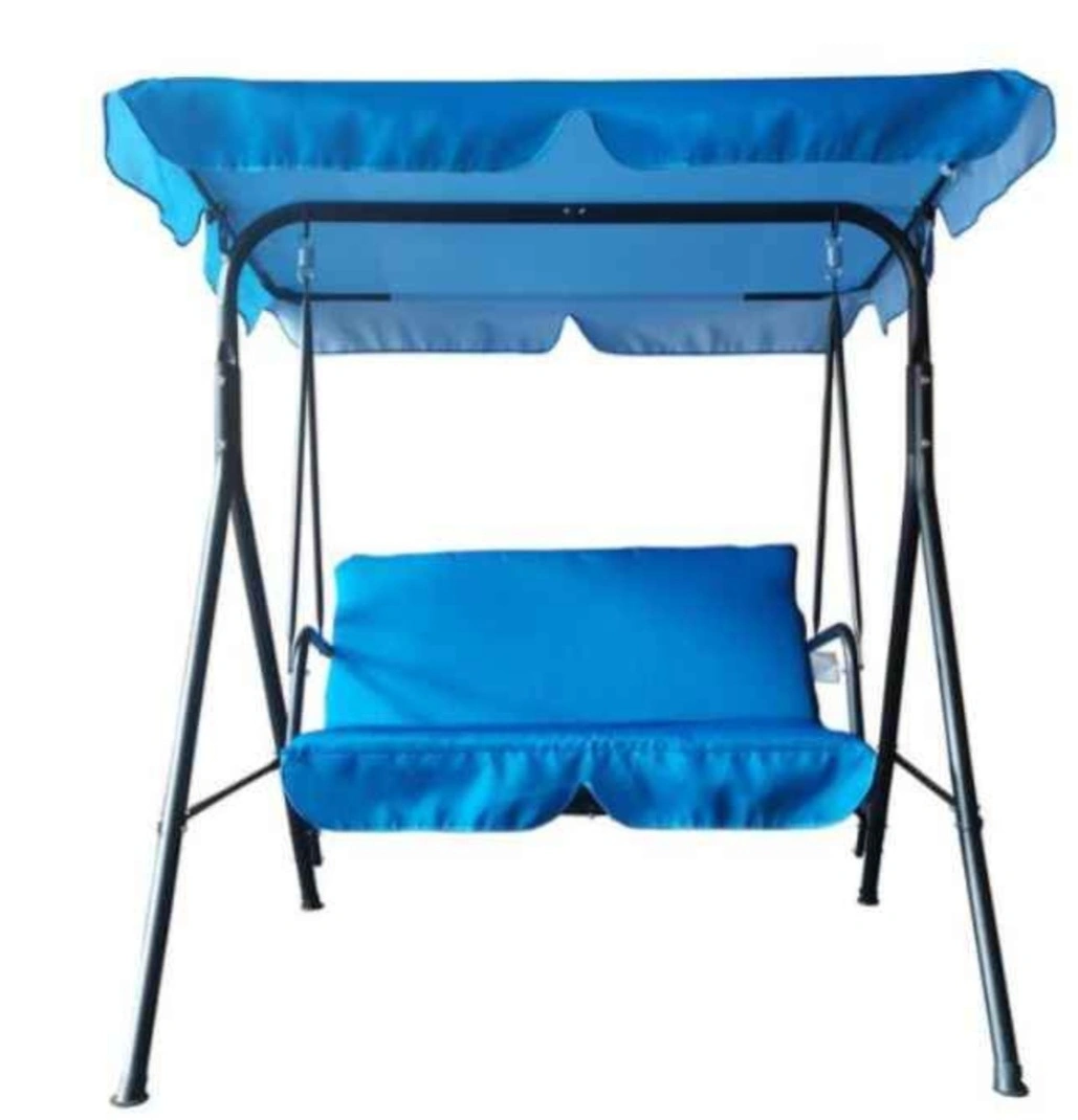 I'm selling a comfy blue outdoor patio swing. It's perfect for relaxing on your porch or in your backyard. The swing features a canopy to provide shade on sunny days. It's in great condition and ready for a new home!