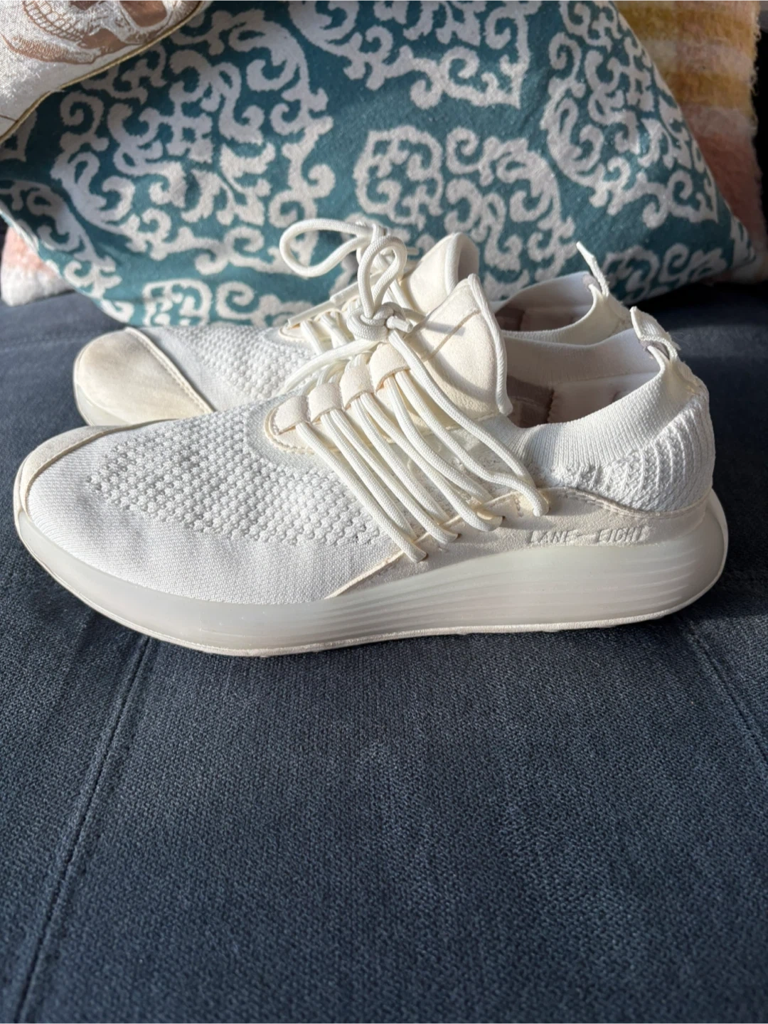 814Like new white sneakers from Winners. Only worn once and now I never reach for them. Soles are not worn down at all and they are extremely comfortable. Be stylish and good to your feet! They go well with dresses too for a dressed down look. Pickup near Sherbourne and Adelaide St East or at some TTC stations. Thanks