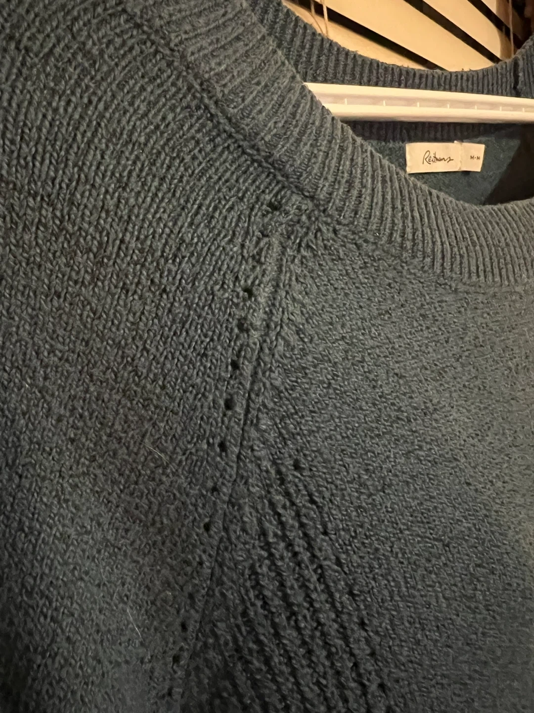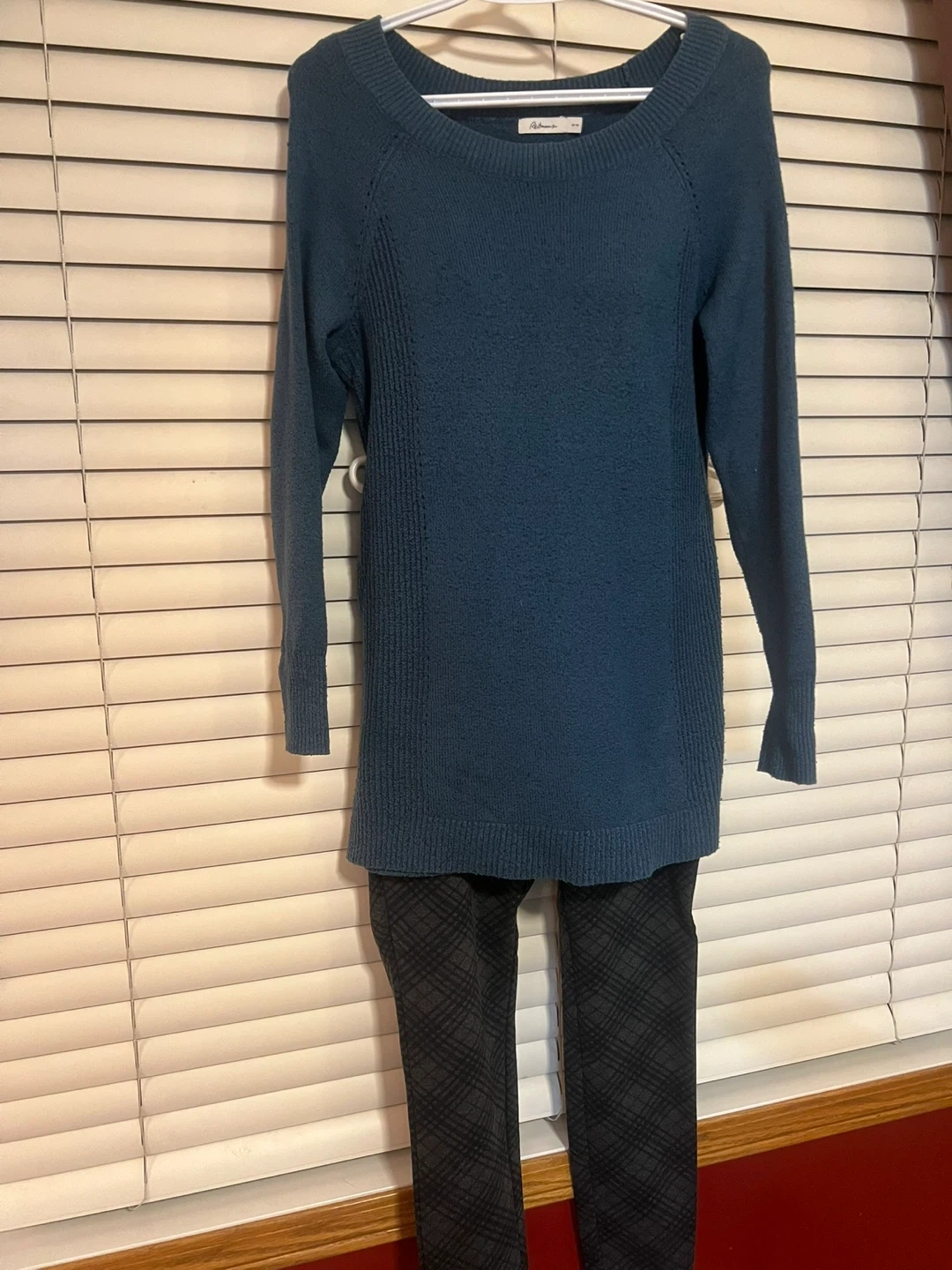 Selling a lovely Reitmans knit sweater (med) and pants (sz 6) in a beautiful blue colour! It's in good condition. Perfect for layering or wearing on its own