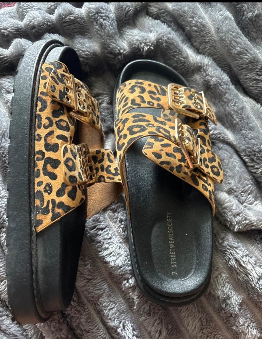 25Cute leopard print slides from 7 Streetwear Society! These sandals have a platform sole and gold buckle details