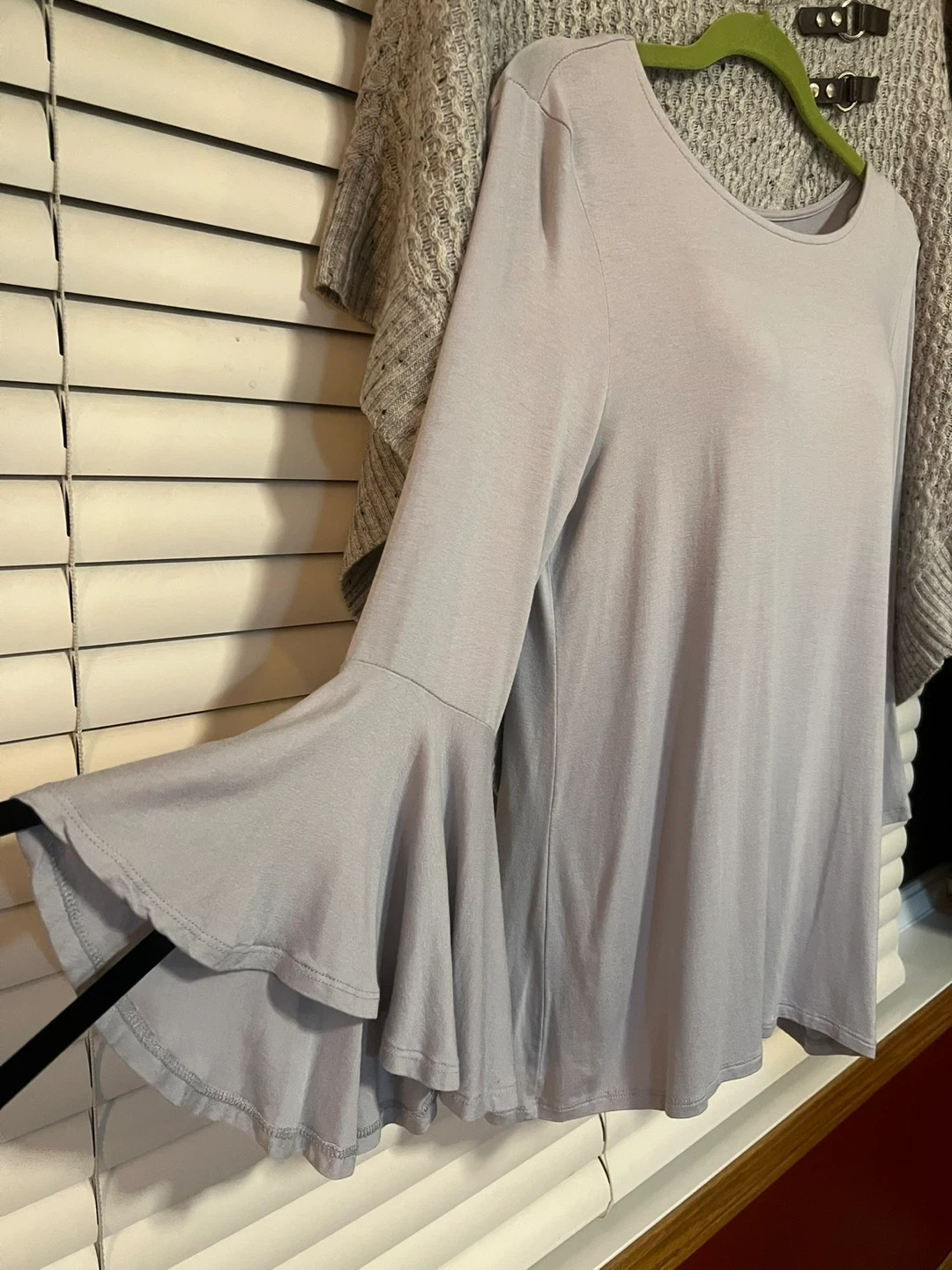Selling a Lily Morgan bell sleeve top in size M/M. It's a beautiful light grey colour and in great condition!
