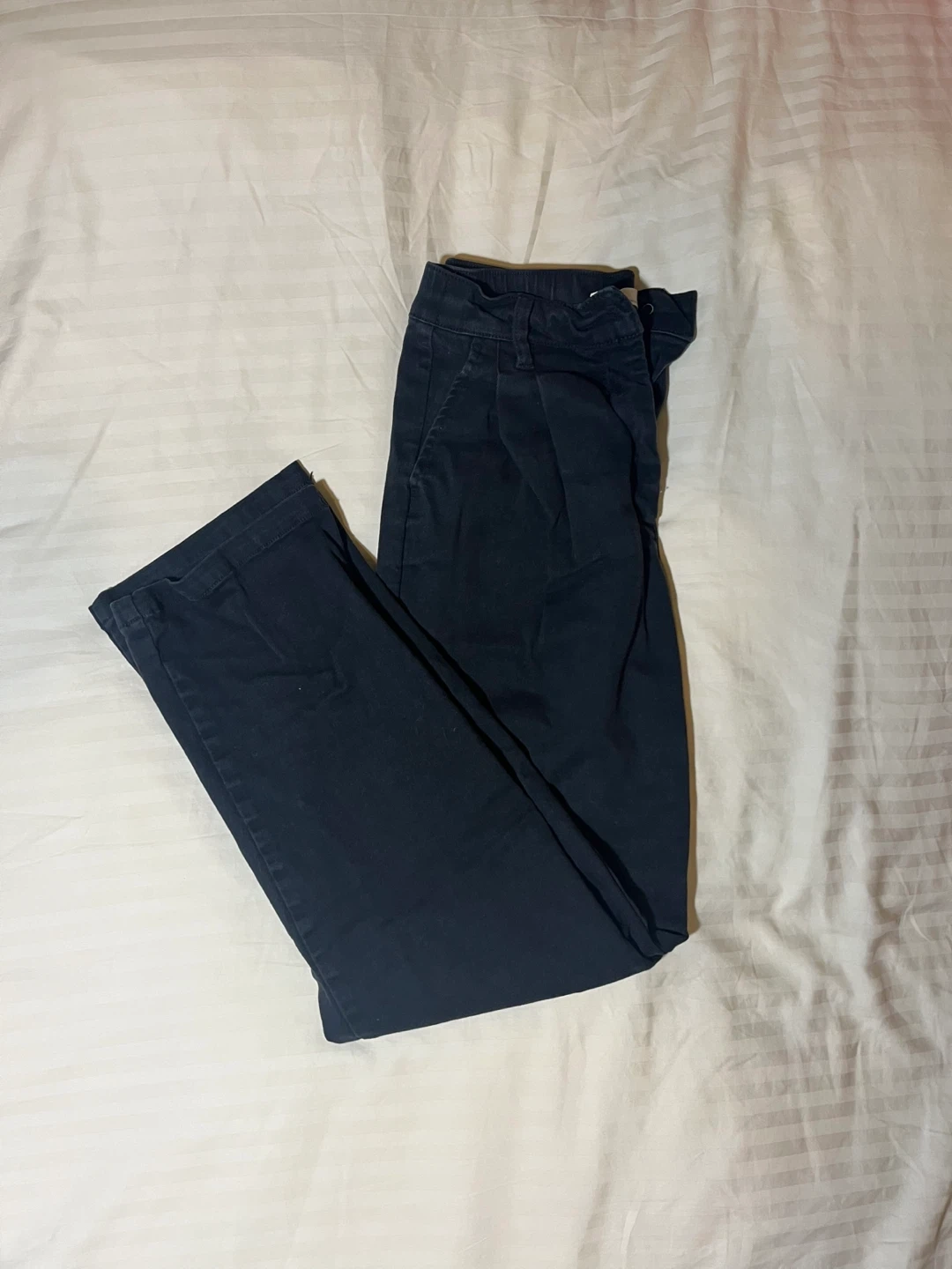 Black bottoms with a loose fit. Soft denim fabric. Ideal for versatile styling.