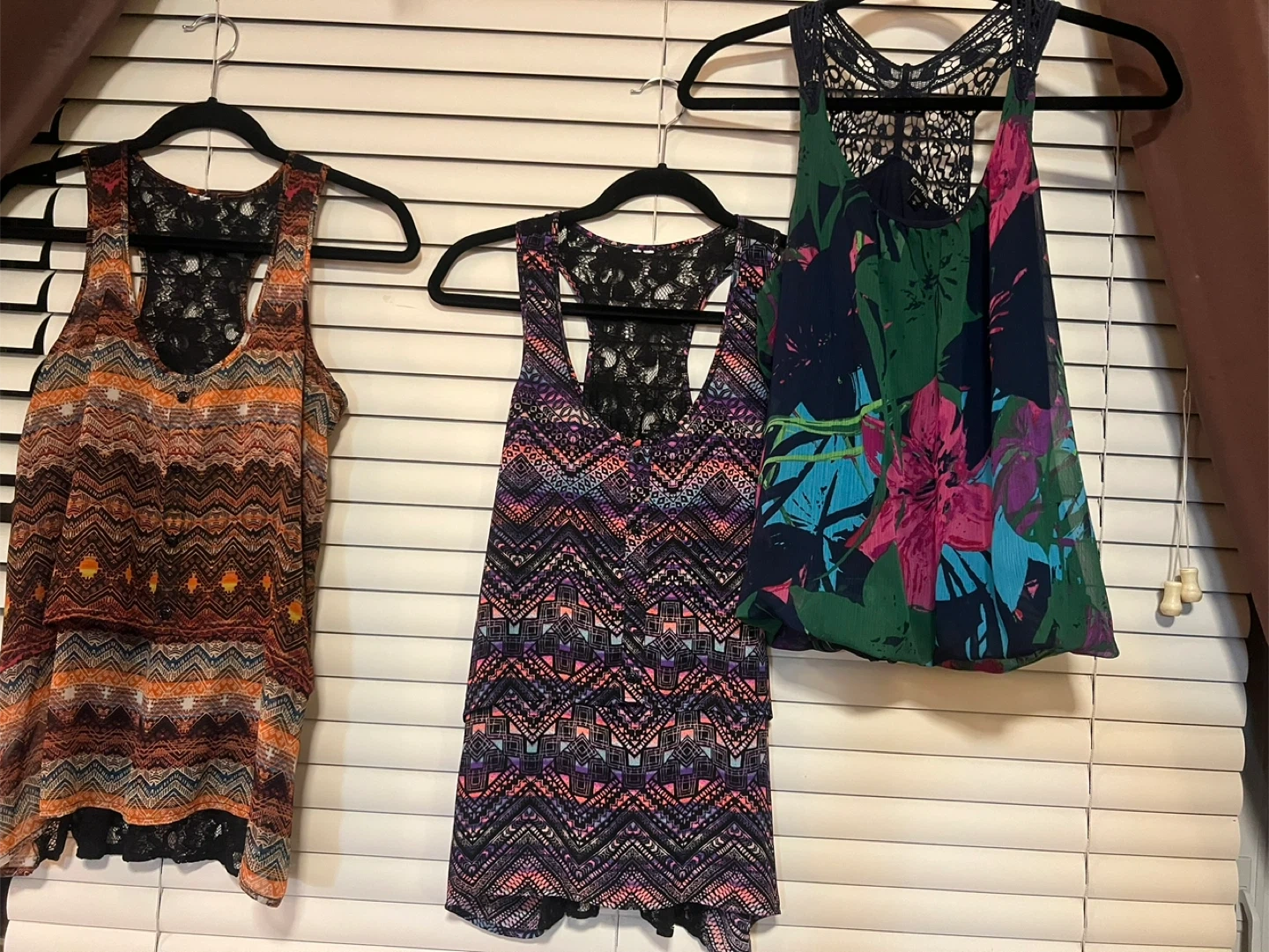 I have a few patterned tank tops for sale! They all have a cute lace detail on the back. They are in great condition and ready for a new home!