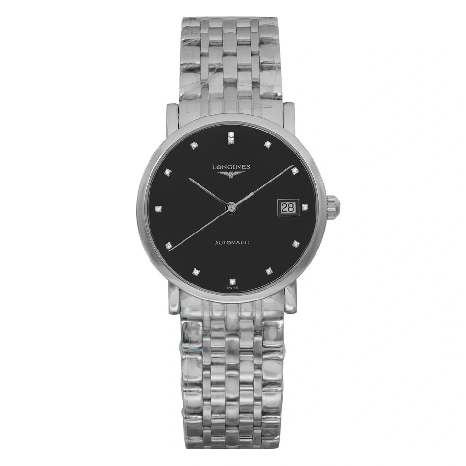 Longines Elegant Steel Black Diamond Dial Automatic Ladies Watch