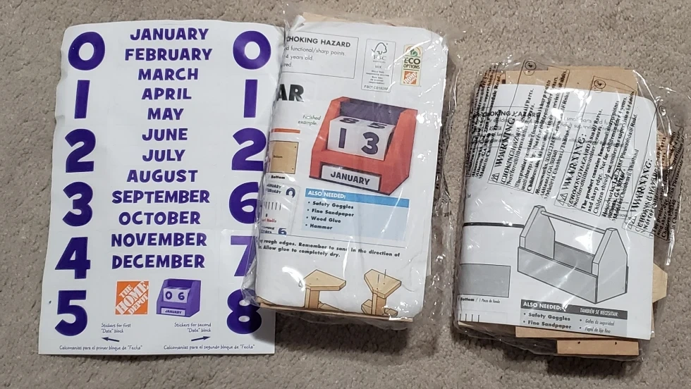 I'm selling a brand new DIY Perpetual Calendar Kit from The Home Depot! It includes everything you need to build your own calendar, including the wooden pieces, stickers for the months and numbers, and instructions. A fun and engaging project for all ages!