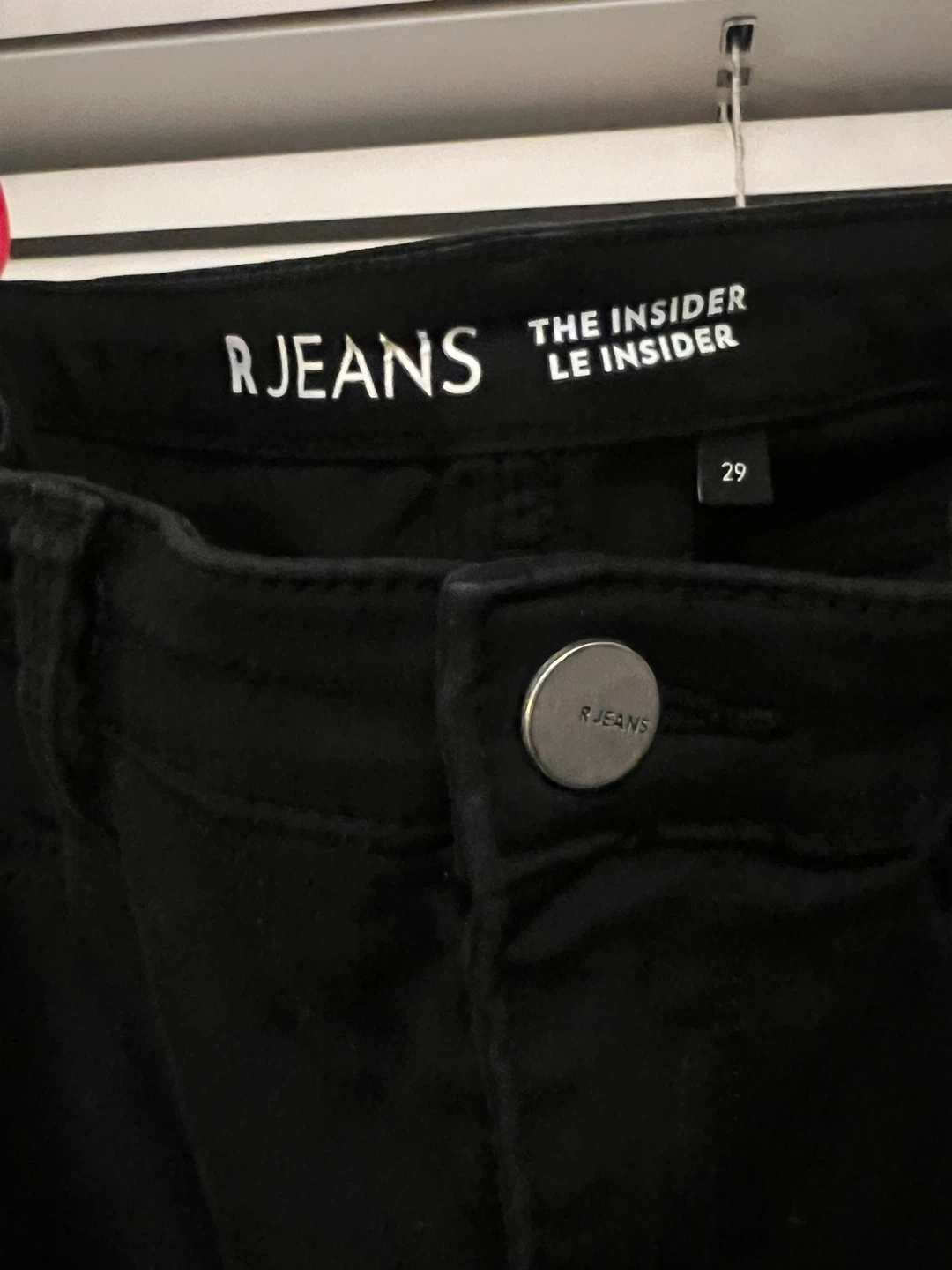 21Selling a pair of R Jeans in black, model 'The Insider'! They are size 29 and feature a stylish design with small metallic accents near the ankles. Great for a casual or dressed-up look!
