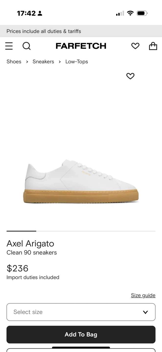 Up scale high-quality was $300 These Axel Arigato Clean 90 sneakers are in great condition! They feature a minimalist, low-top design with a subtle gold "Arigato" logo stamped on the side.