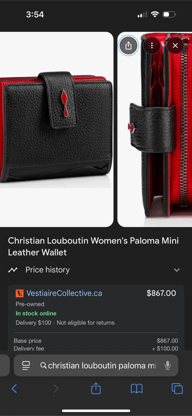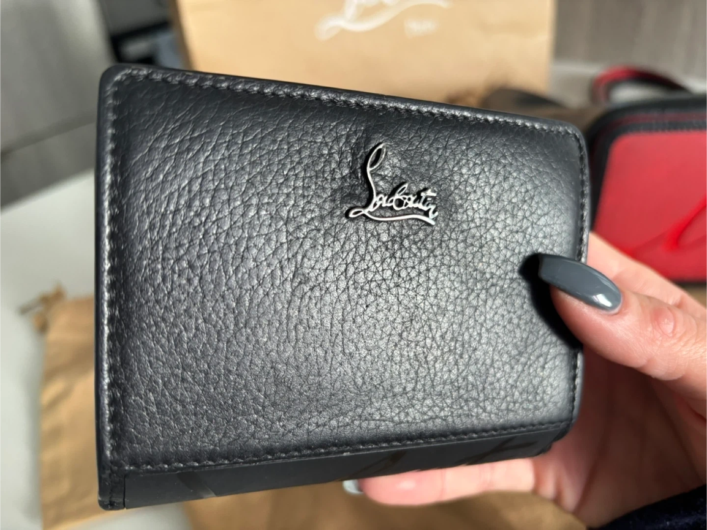 Selling a Christian Louboutin Paloma Mini Leather Wallet. It's a stylish accessory with a black exterior and a vibrant red interior. Perfect for keeping your cards and cash organized with a touch of luxury!