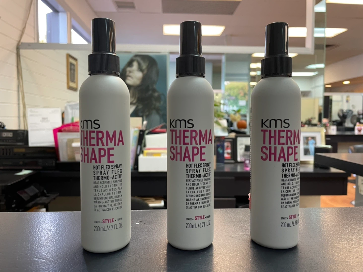 10NEW KMS Therma Shape hot flex spray This is a heat-activated shaping spray that helps hold your style. It comes in a 200 mL / 6.7 fl oz bottle. Perfect for starting, styling, and finishing your hair! Spray into towel-dried hair . Blow dry and shapes with hot tools. * pick up in Kerrisdale, Vancouver * Tue — Sat. 10am to 5pm * Cash , Debit, Visa