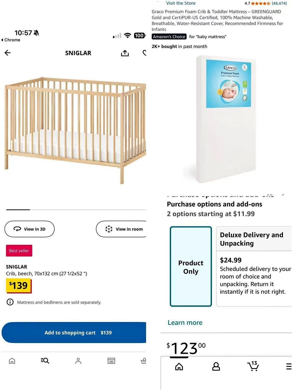 10Ikea Sniglar crib + Graco mattress — both 99% new, like brand new! 🍼 Used only a few times, very clean and well cared for. Pick up in Vancouver. ✨ Perfect for your little one, ready to use!