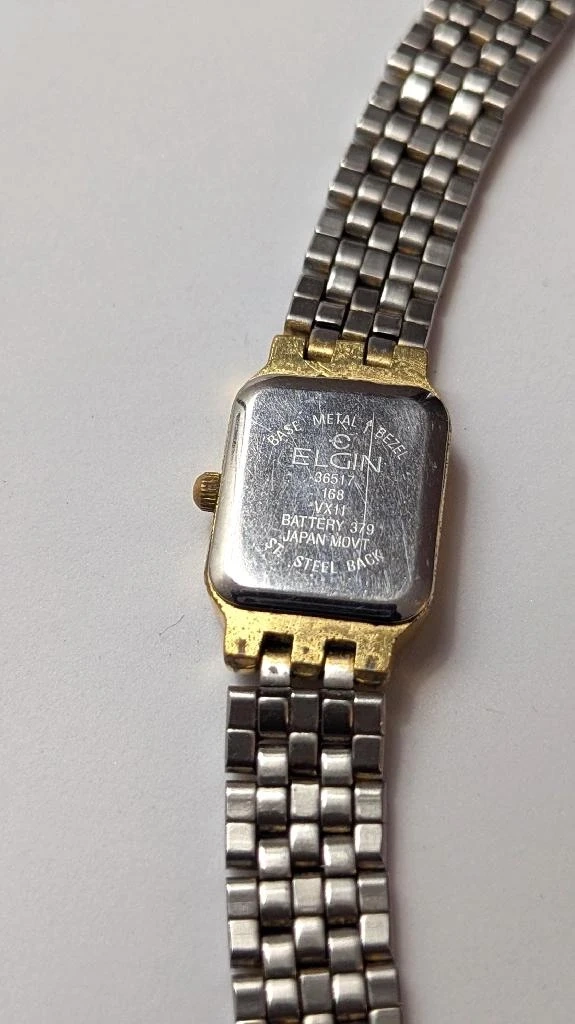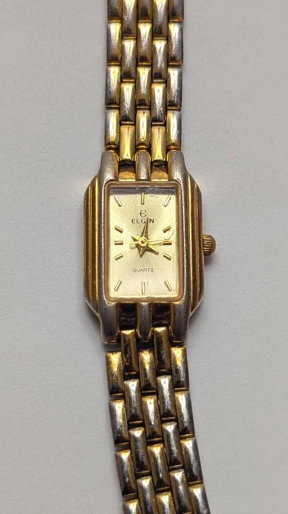 VINTAGE 80s Elgin Quartz Two-Tone Watch / Rectangular