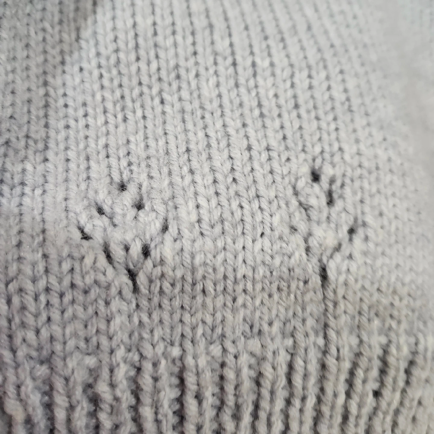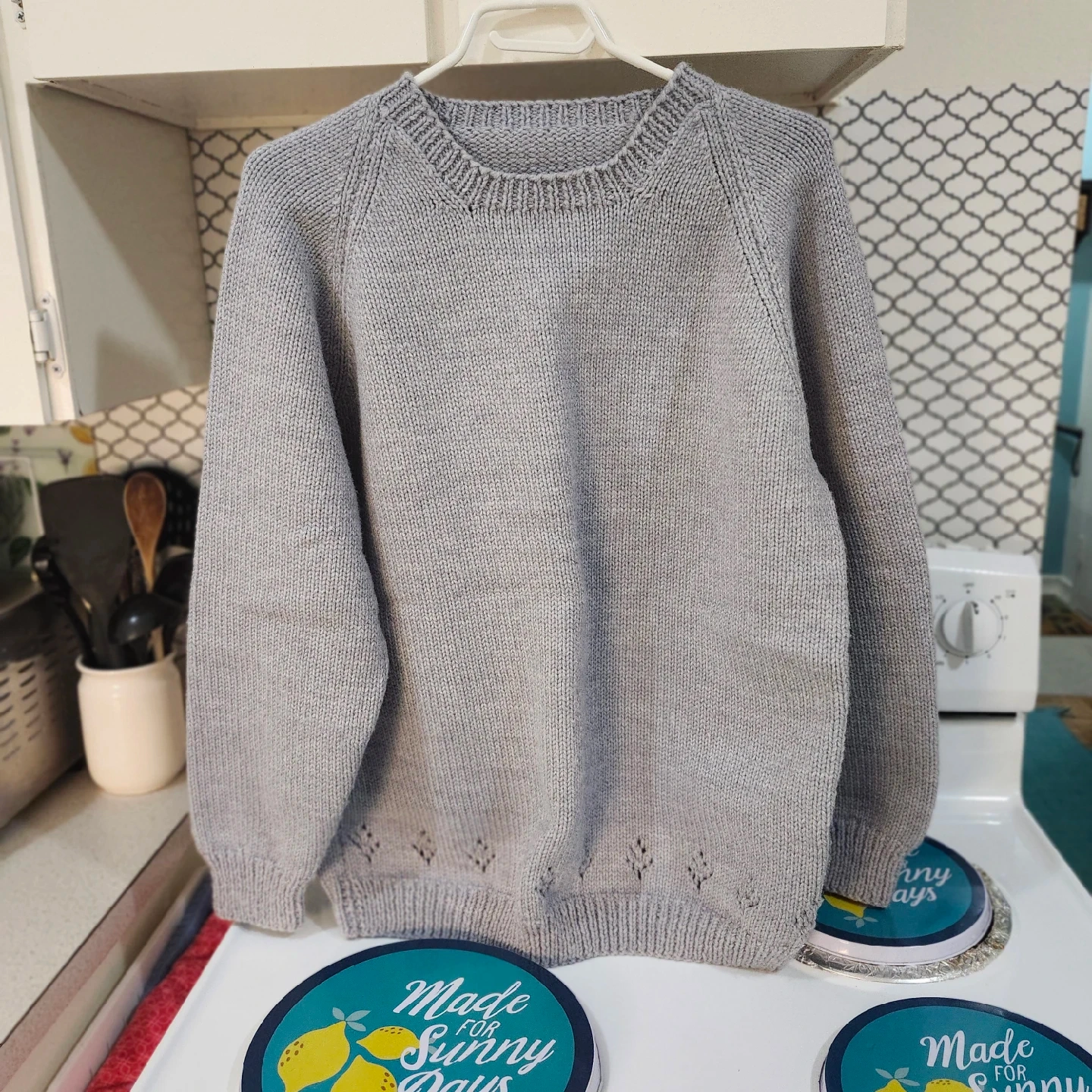 Selling a beautiful,comfy,grey,hand knit sweater. It's never been worn.Has tons of stretch so it would fit like medium,large and X large.Has knit detail at the bottom.