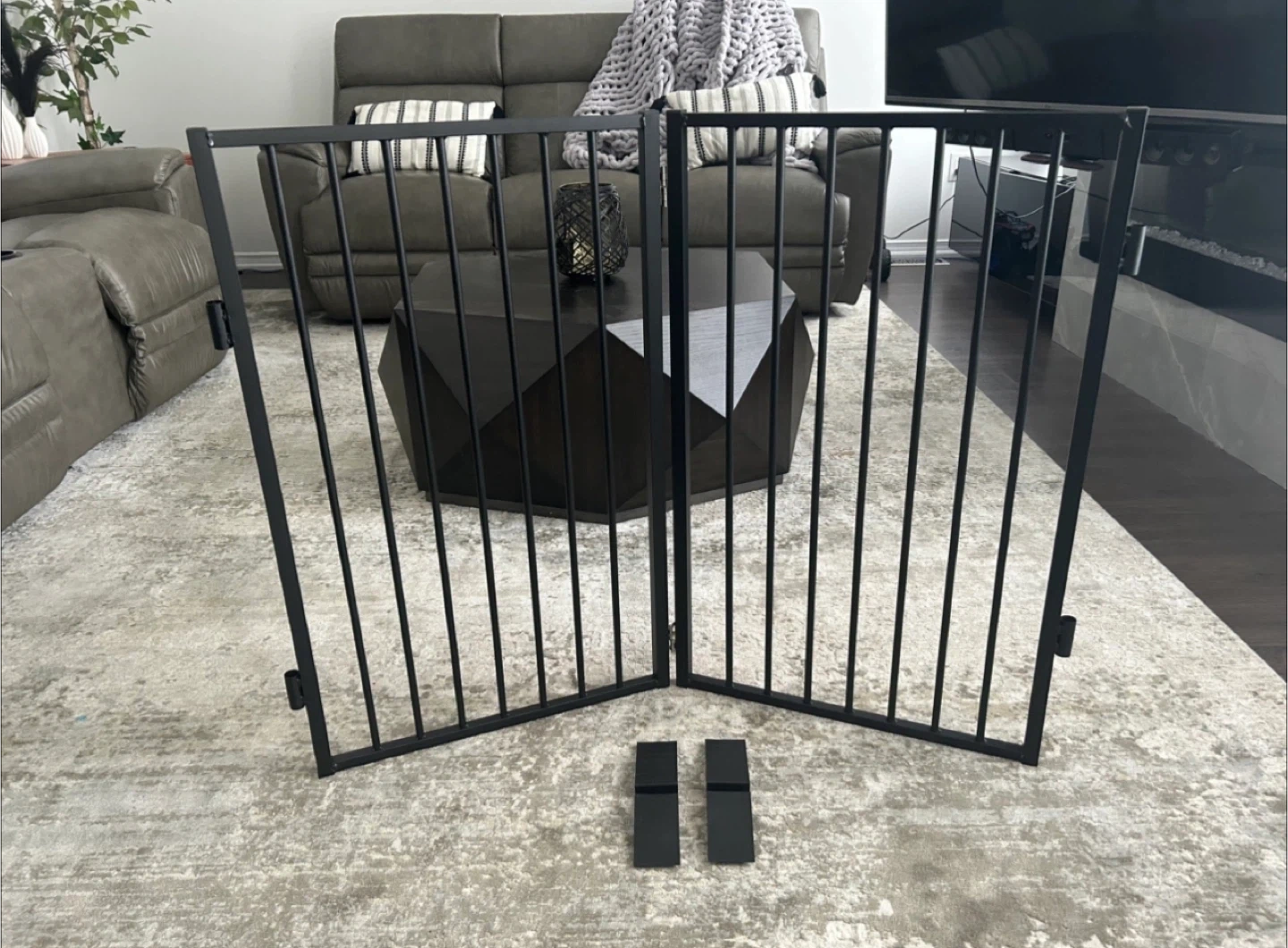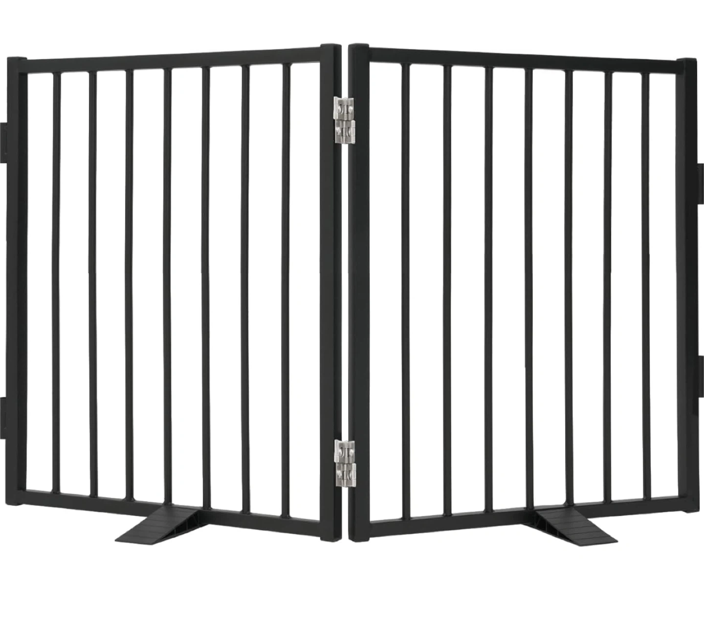 Indoor Outdoor Puppy Gate with Floor Protect Support Feet, 40x24Inches Foldable Pet Door for Stairs, Hallways and Doorways (24'' H 2 Panels, Black