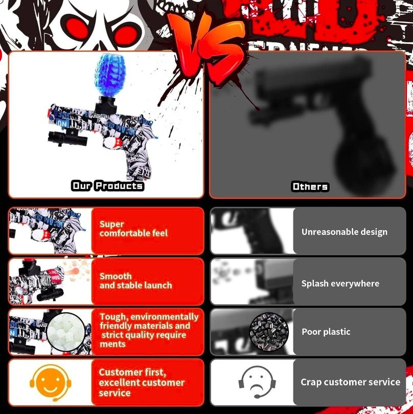 Brand new, never used. This 2-pack automatic gel ball blaster set delivers fast-paced backyard fun with safe, water-based ammo. Each blaster features a colorful, graffiti-style design and fires hydrated gel beads at speeds up to 100 feet per second. The rechargeable design offers hours of play without frequent battery changes. Perfect for two players, the set includes protective goggles, target cards, and over 100000 gel beads for endless rounds of action. Lightweight yet durable, these blasters are ideal for outdoor games, parties, or holiday gifts, offering safe and exciting shooting entertainment for ages 6 and up.