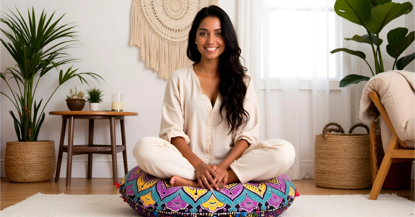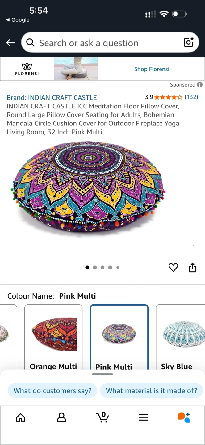 65Add a touch of bohemian flair to your space with this Indian Craft Castle meditation floor pillow! It's perfect for adults and great for use in your living room, yoga space, or even outdoors. The round, large pillow cover features a beautiful mandala cushion design in a vibrant pink multi colour.