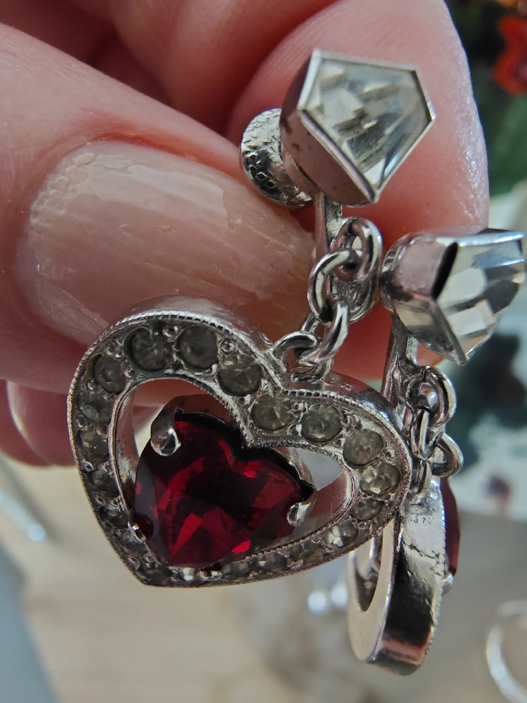 Retired Swarovski Geometric Crystal Cubes, 2 Hoops from the Taxco Store in Miami this year and not worn, 2 random genuine pearl studs no backs, High quality and unique heart screw ons, (vintage if not antique - in impeccable condition), clip on claw set rhinestone drops from Fabrice (an iconic jewellery store, now gone, in Yorkville - these were expensive and they are gorgeous! Never worn), and elegant rhinestone danglies. All stones are intact and each piece is in pristine condition.