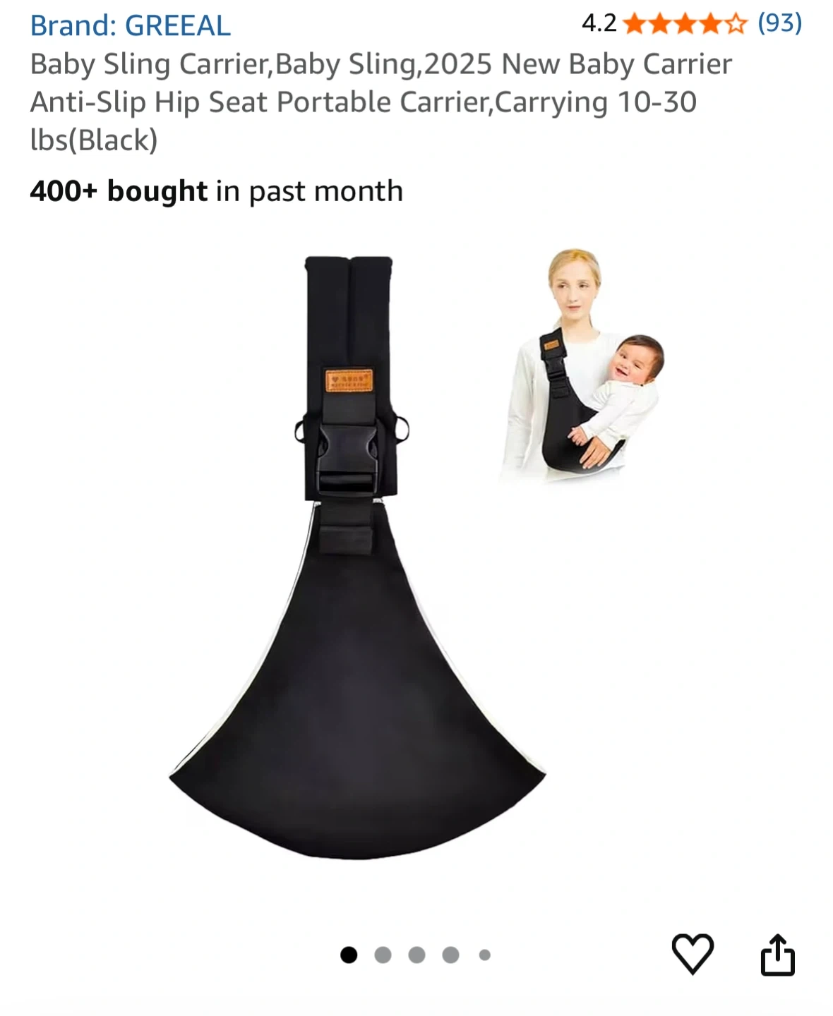 105Selling a GREEAL baby sling carrier in black! It's designed to be an anti-slip hip seat portable carrier, suitable for carrying babies weighing 10-30 lbs. A great way to keep your little one close and secure!