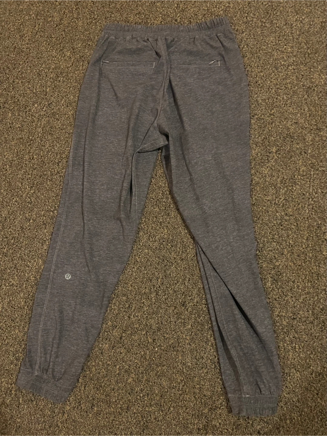 Selling a pair of Lululemon Athletica joggers in a lovely grey colour! They're a size 4 and made with a blend of polyester and elastane for a comfy fit. Perfect for workouts or just lounging around the house