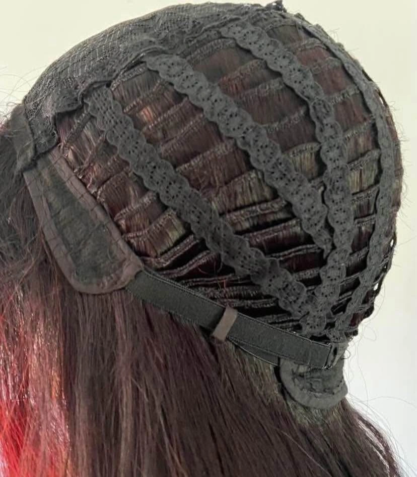 83Brand new synthetic wig, from a smoke-free home Elasticated lace cap is stretchy, breathable, and comfortable Inner elasticated straps adjustable for snug fit One size fits most Bright red and black ombre with black bangs Pick up north end St Catharines Vine/Scott Unable to meet or deliver