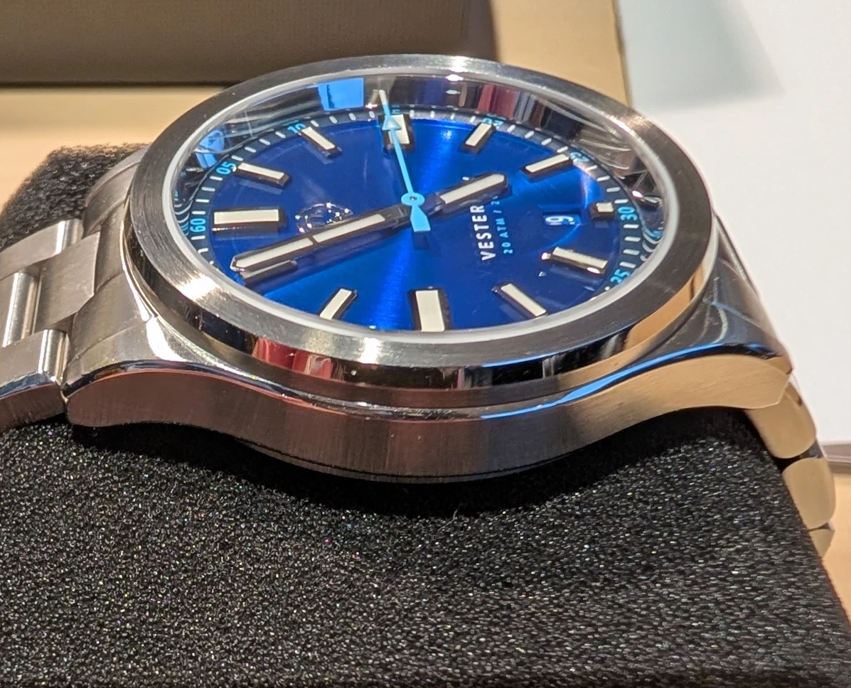 Some light wear as shown in photos - a very light mark on the bezel between the 6 and 7