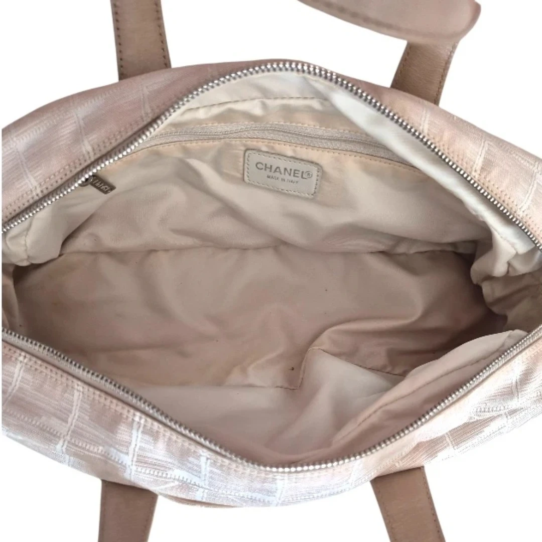 Authentic Chanel Travel Line Beige Jacquard Canvas Handbag