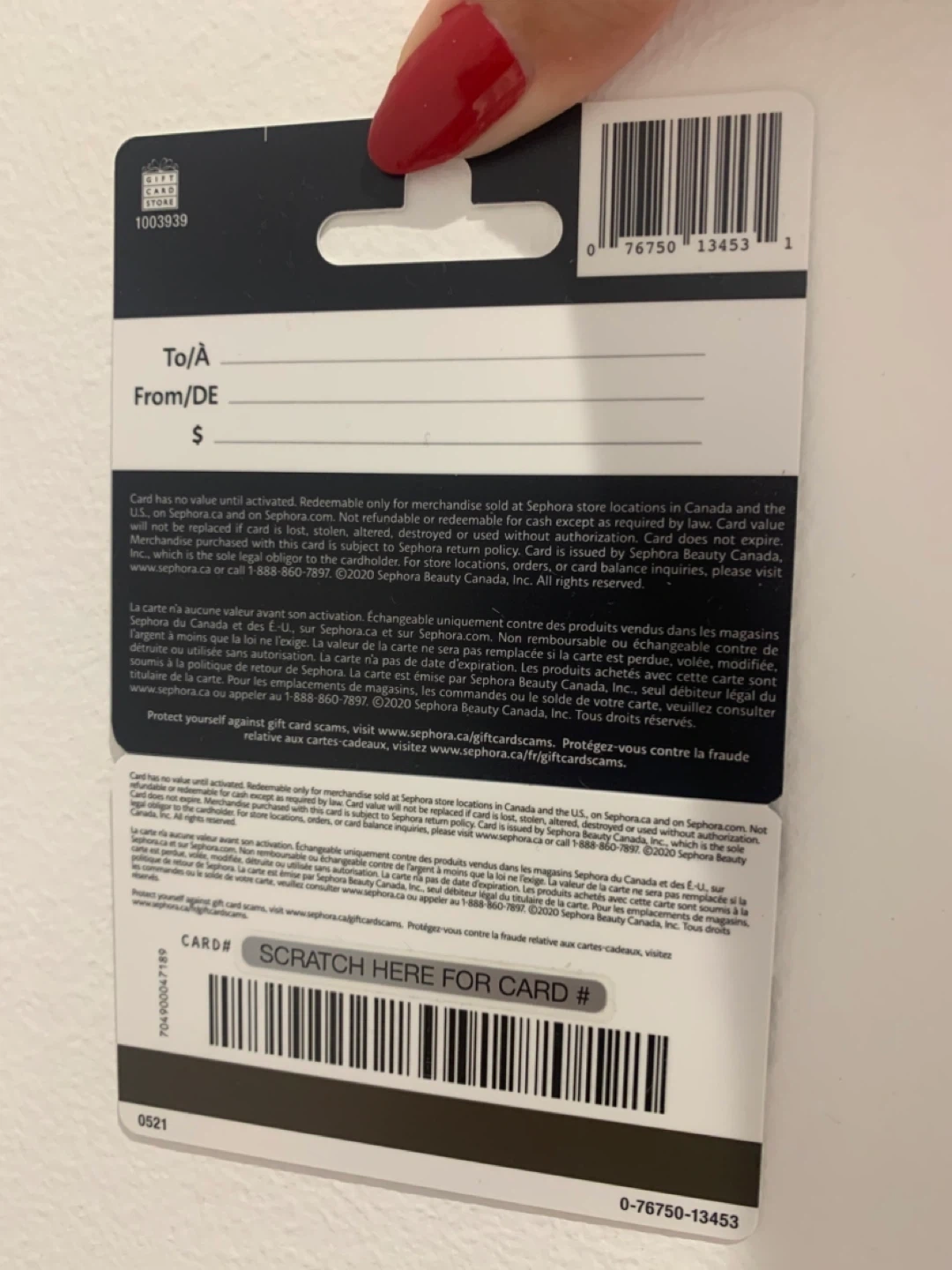 π₯This card can be redeemed for merchandise at Sephora stores in Canada and the US. Perfect for treating yourself or gifting to someone special.