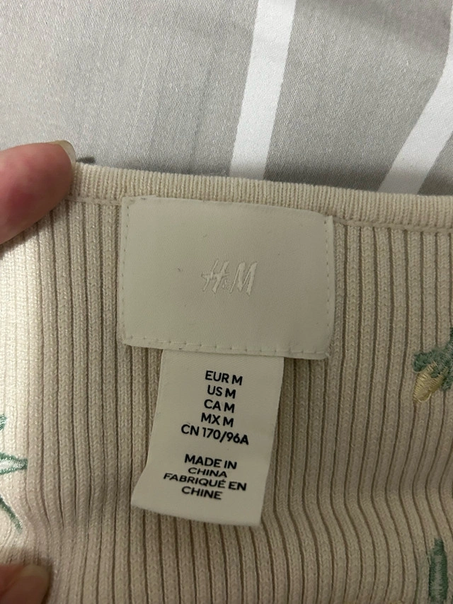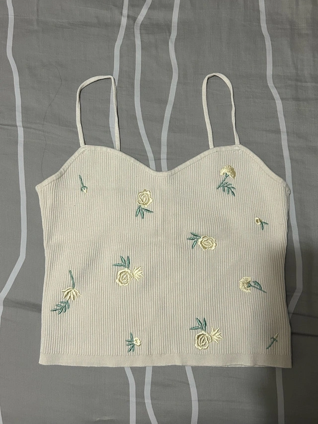 This is a H&M tank top with floral embroidery, perfect for a cute, casual look! It's in good used condition.