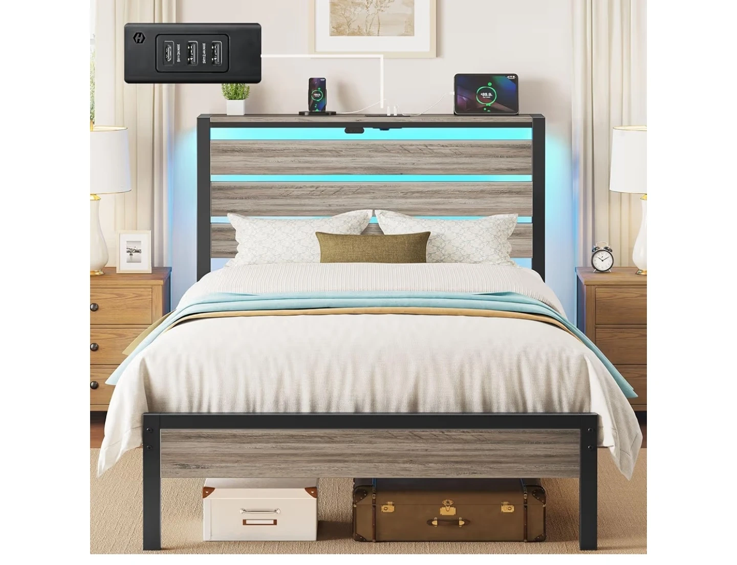 Selling a twin-size bed frame with fantasy RGB LED lights! It's easy to control with the app system. The dimensions are approximately 80.7" x 39.4" x 43.3". It also includes a smart controller with over 60,000 colours, mic mode, music mode, and timing mode