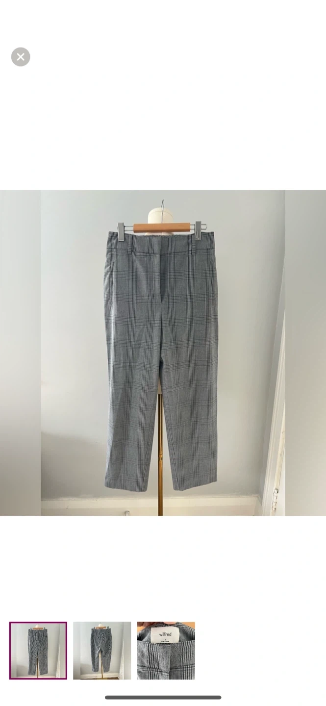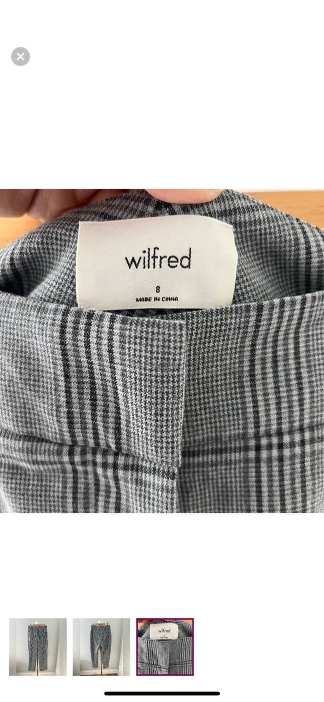 Selling a pair of Wilfred cropped pants in a stylish plaid pattern. They are a size 8 and in great condition! Perfect for adding a touch of sophistication to your wardrobe