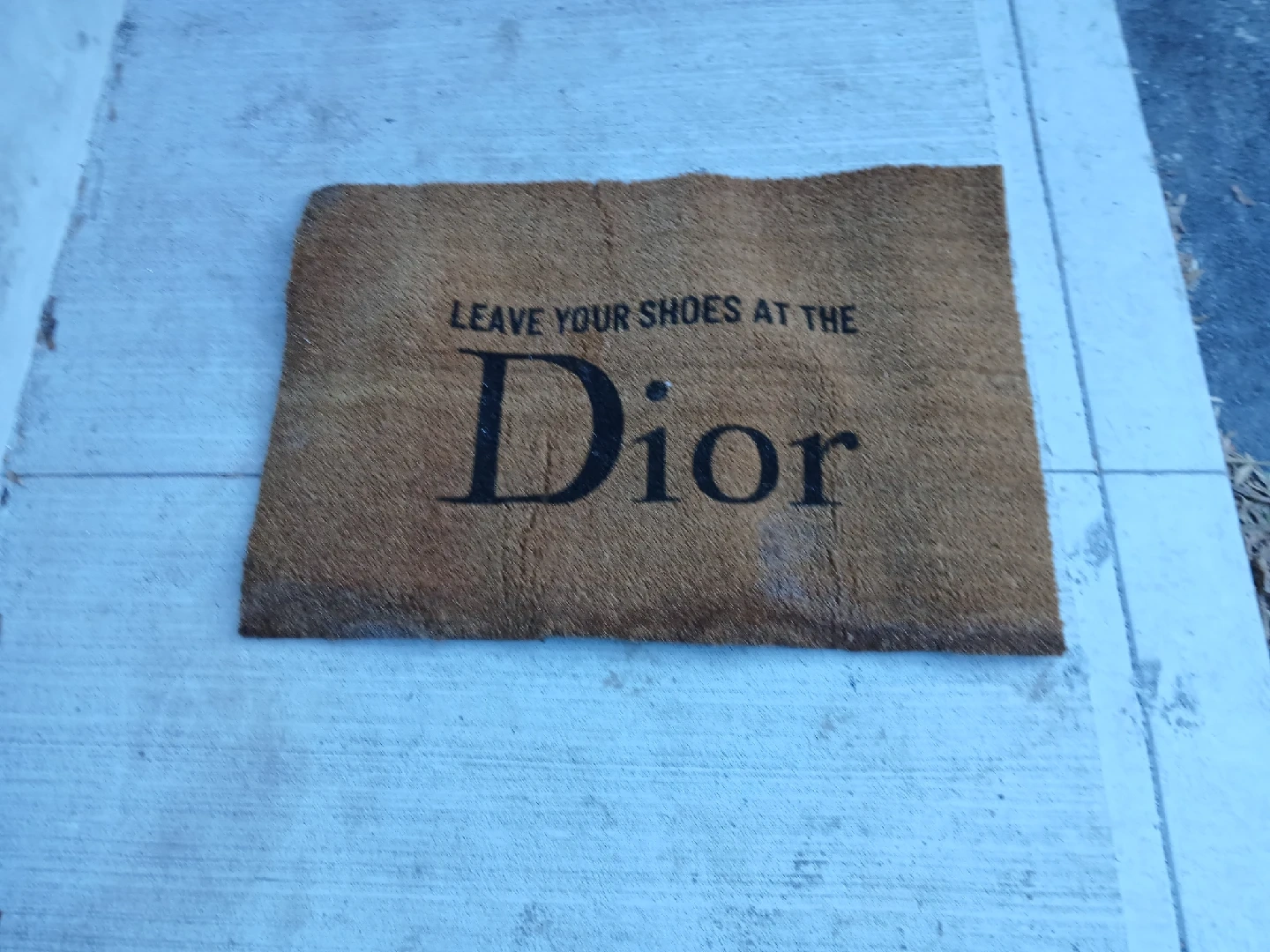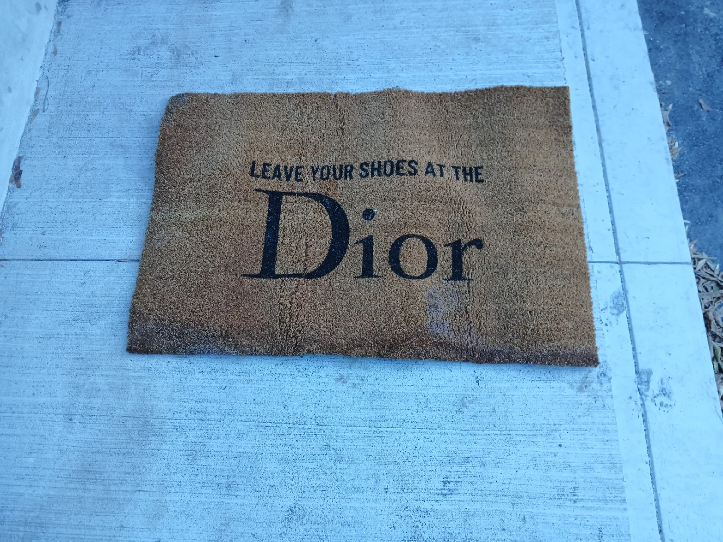 Cute Dior doormat for sale! It says 'Leave Your Shoes At The Dior'. It's in good condition and ready to add a touch of luxury to your doorstep. Pick up in Scarborough at Markham and Lawrence Ave E
