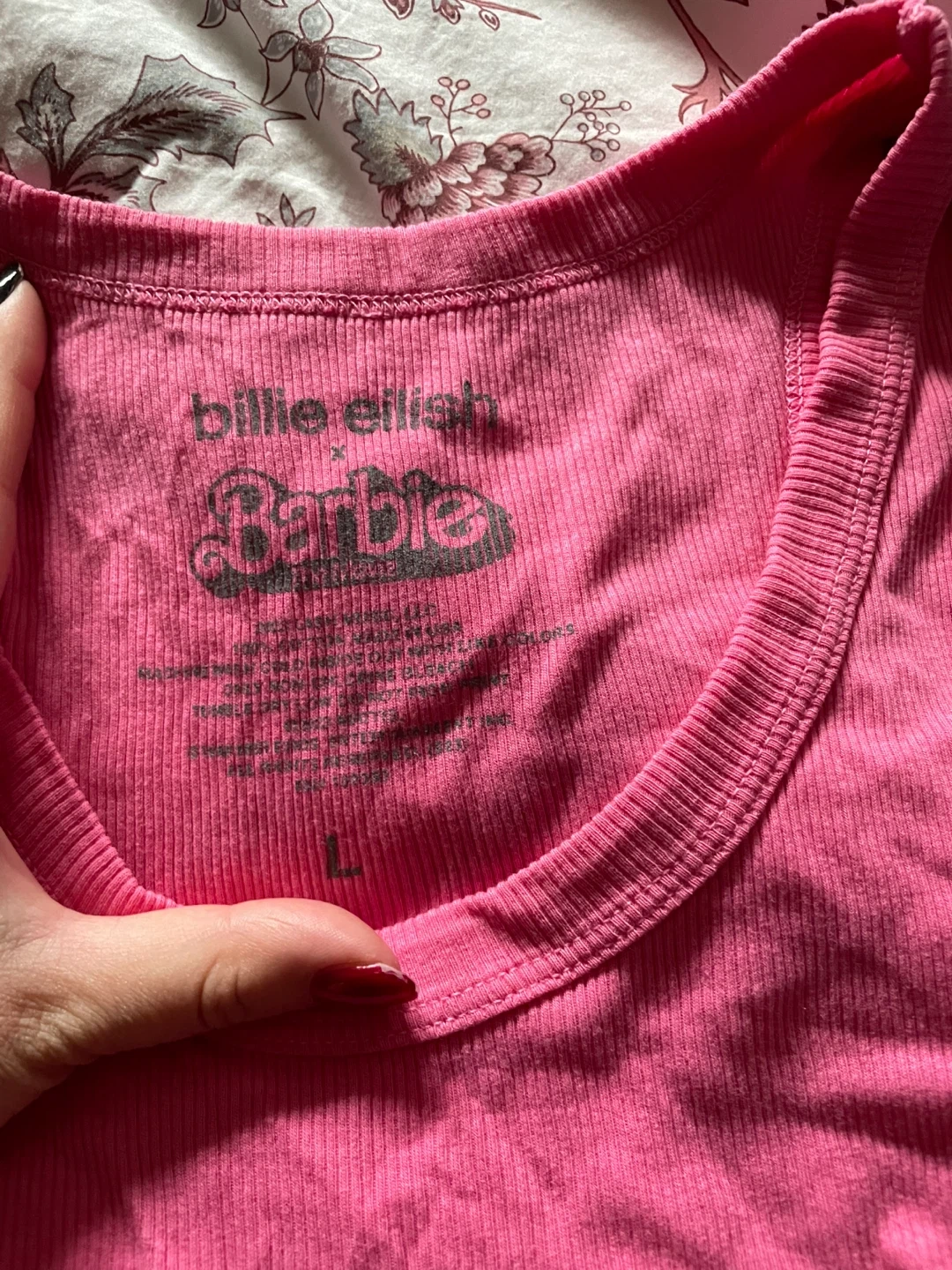 Billie Eilish Barbie tank top! Hot pink. size Large. Bedazzled Billie on front.
