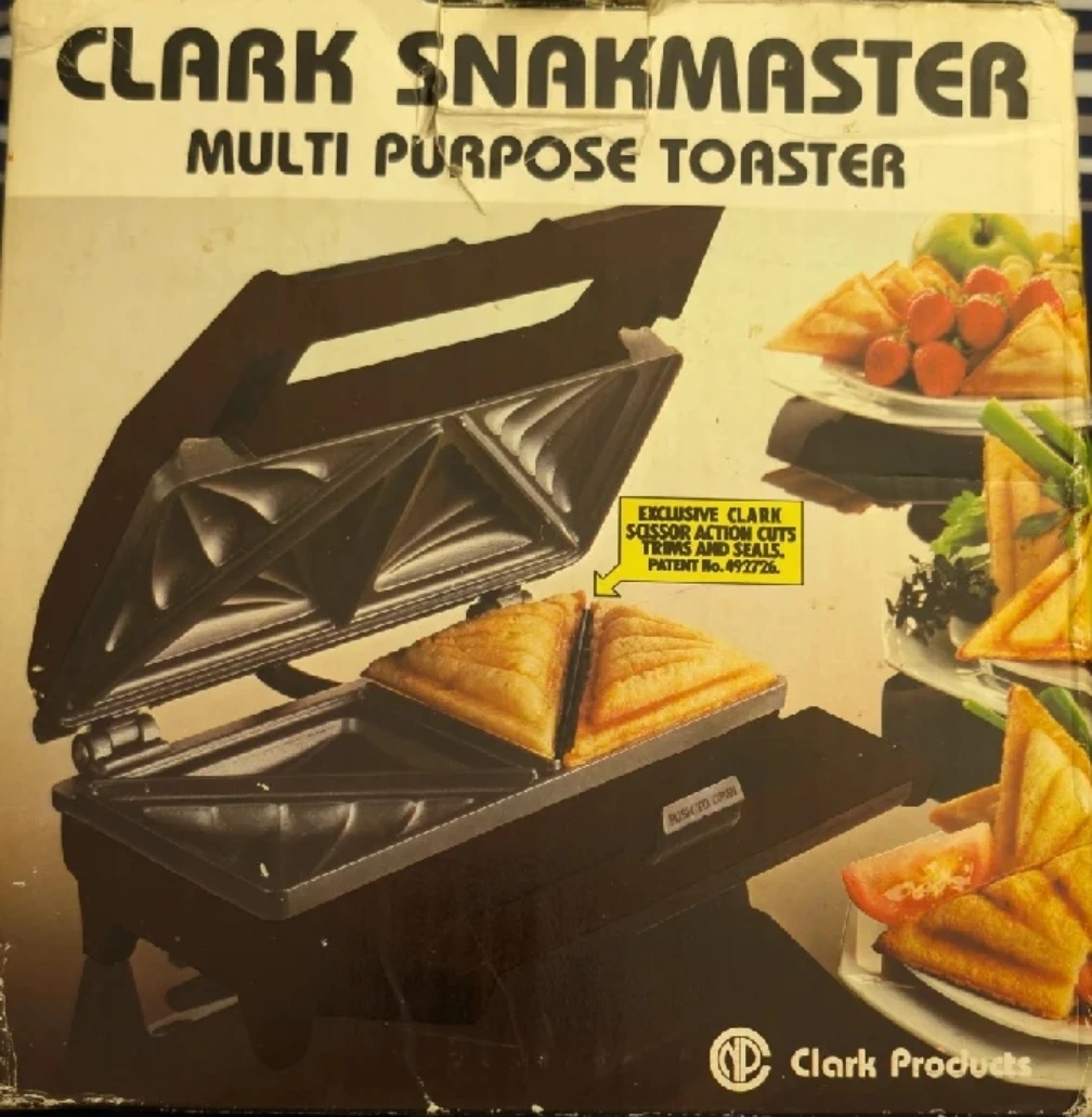 Selling a Clark Snakmaster multi purpose toaster! It's perfect for making sandwiches and other snacks. It features an exclusive Clark scissor action that cuts, trims, and seals.