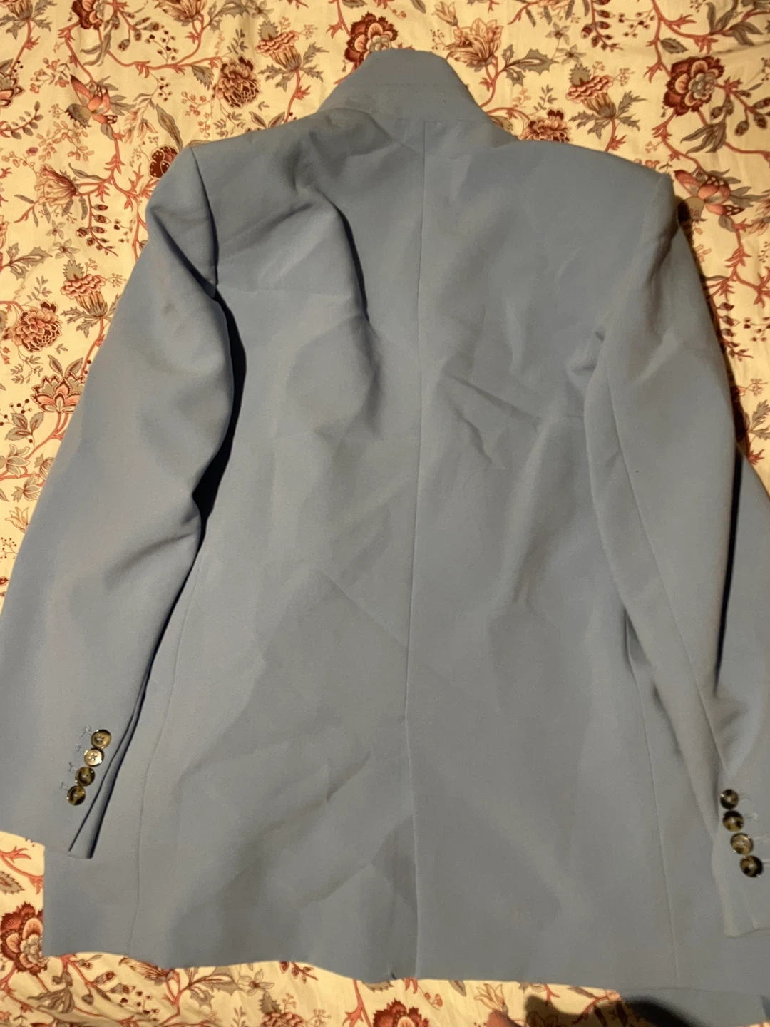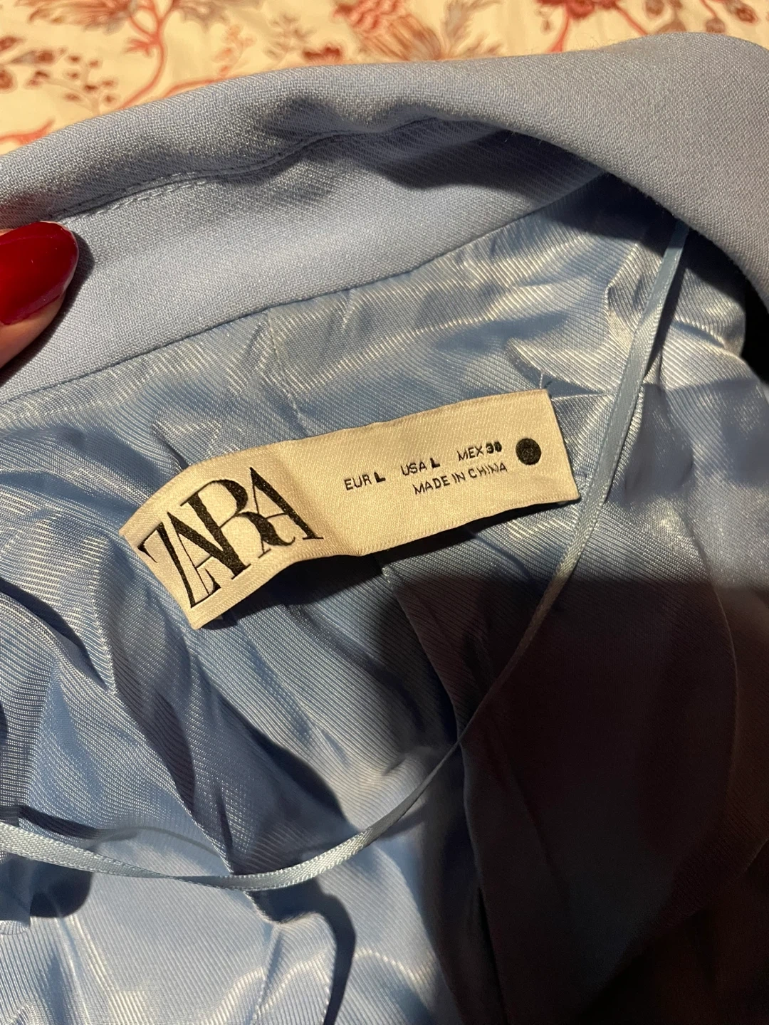 Selling a Zara blazer in a lovely light blue colour. It's a size large and in great condition! Perfect for adding a pop of colour to your wardrobe or dressing up for an event