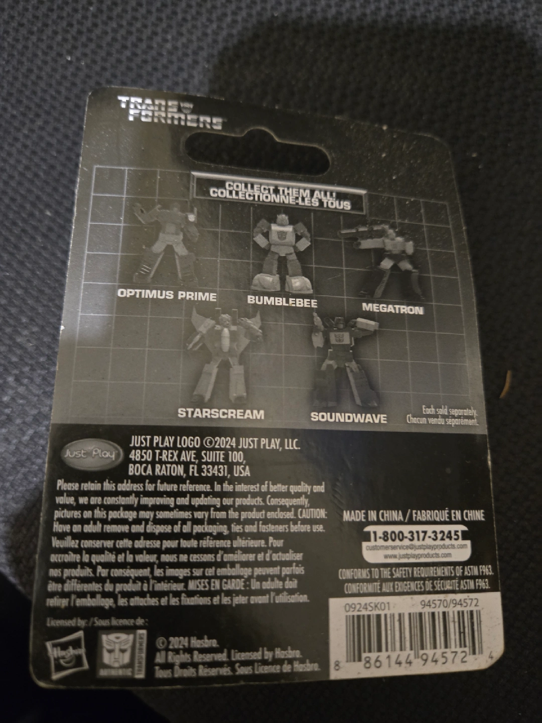 Selling a brand new Transformers Bumblebee action figure, still sealed in its original packaging! This figure is part of the classic Transformers lineup. The back of the packaging shows other figures in the series: Optimus Prime, Megatron, Starscream, and Soundwave. Made in China.