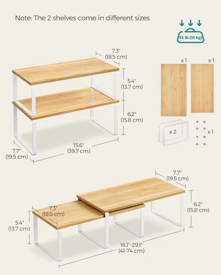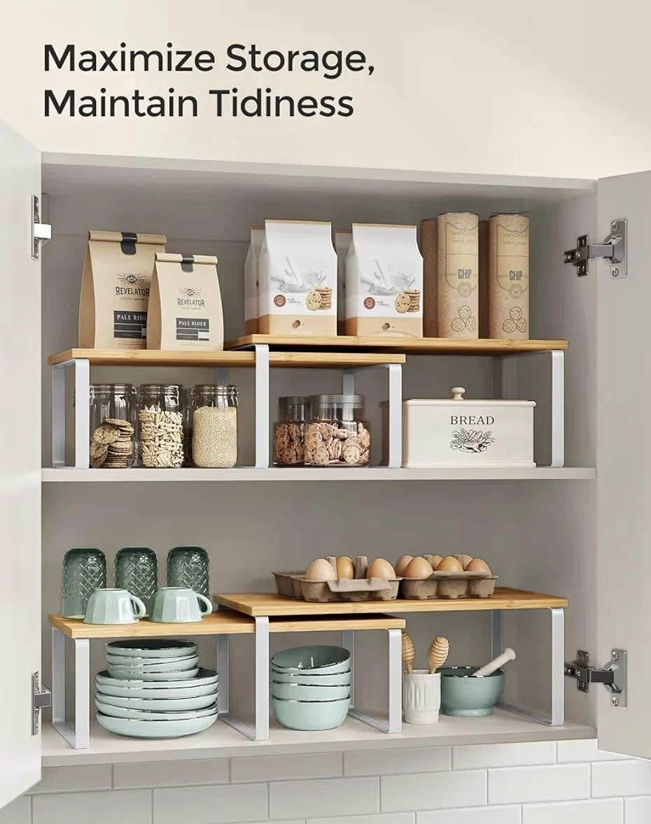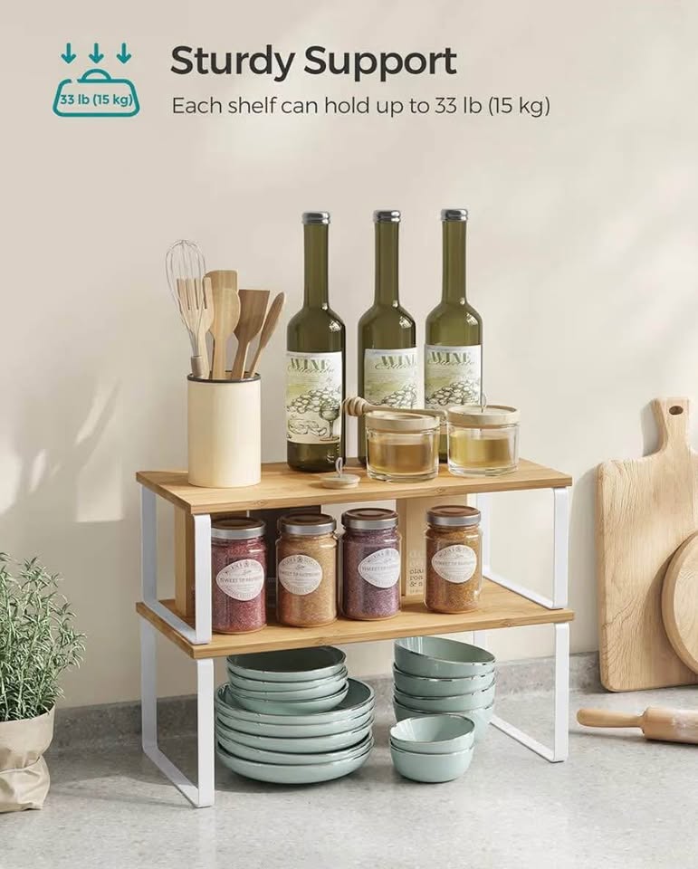 Upgrade your kitchen storage with this brand new set of 2 large SONGMICS Cabinet Organizer Shelves! Perfect for spices, dishes, or pantry items — elegant Cloud White & Natural Beige finish fits any décor.