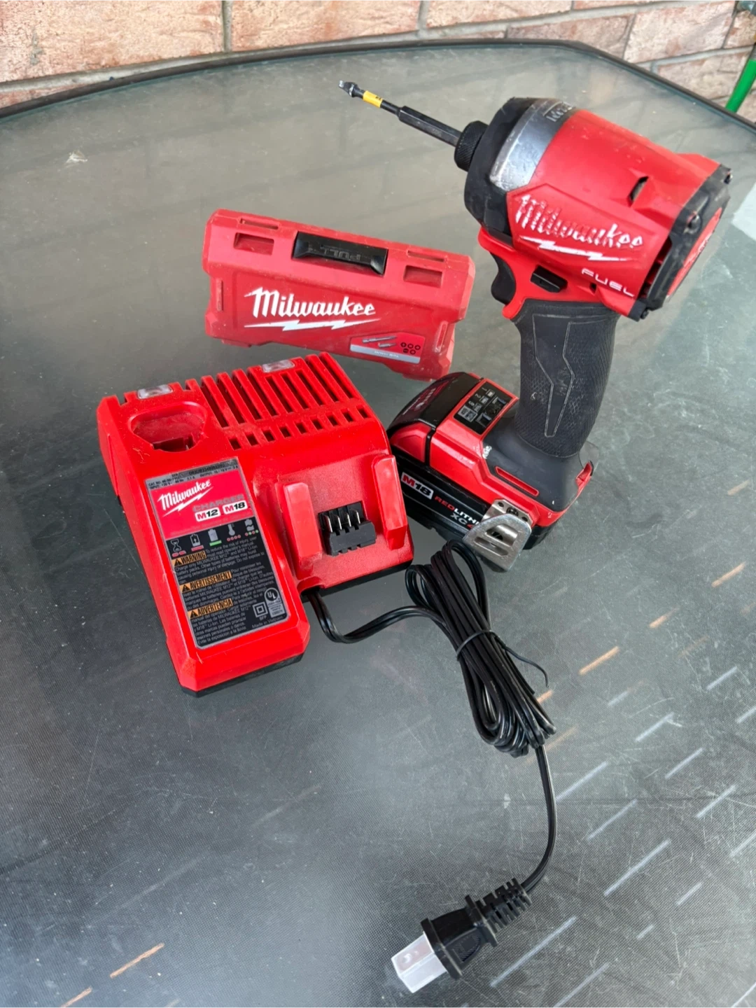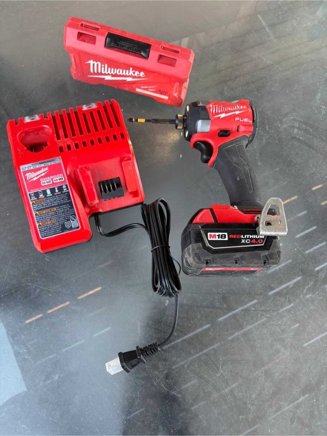 Selling a used Milwaukee M18 FUEL impact driver kit. It comes with the impact driver, battery, charger, and case. Great for any job around the house or on the job site! It shows some signs of use but is still in good working condition.