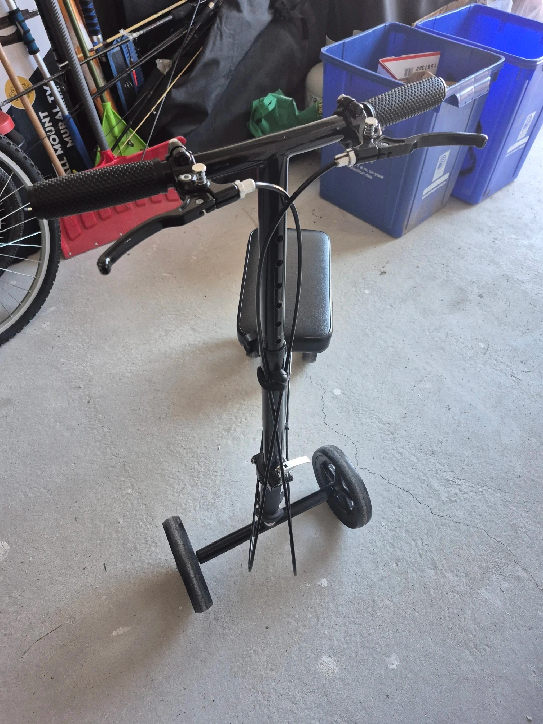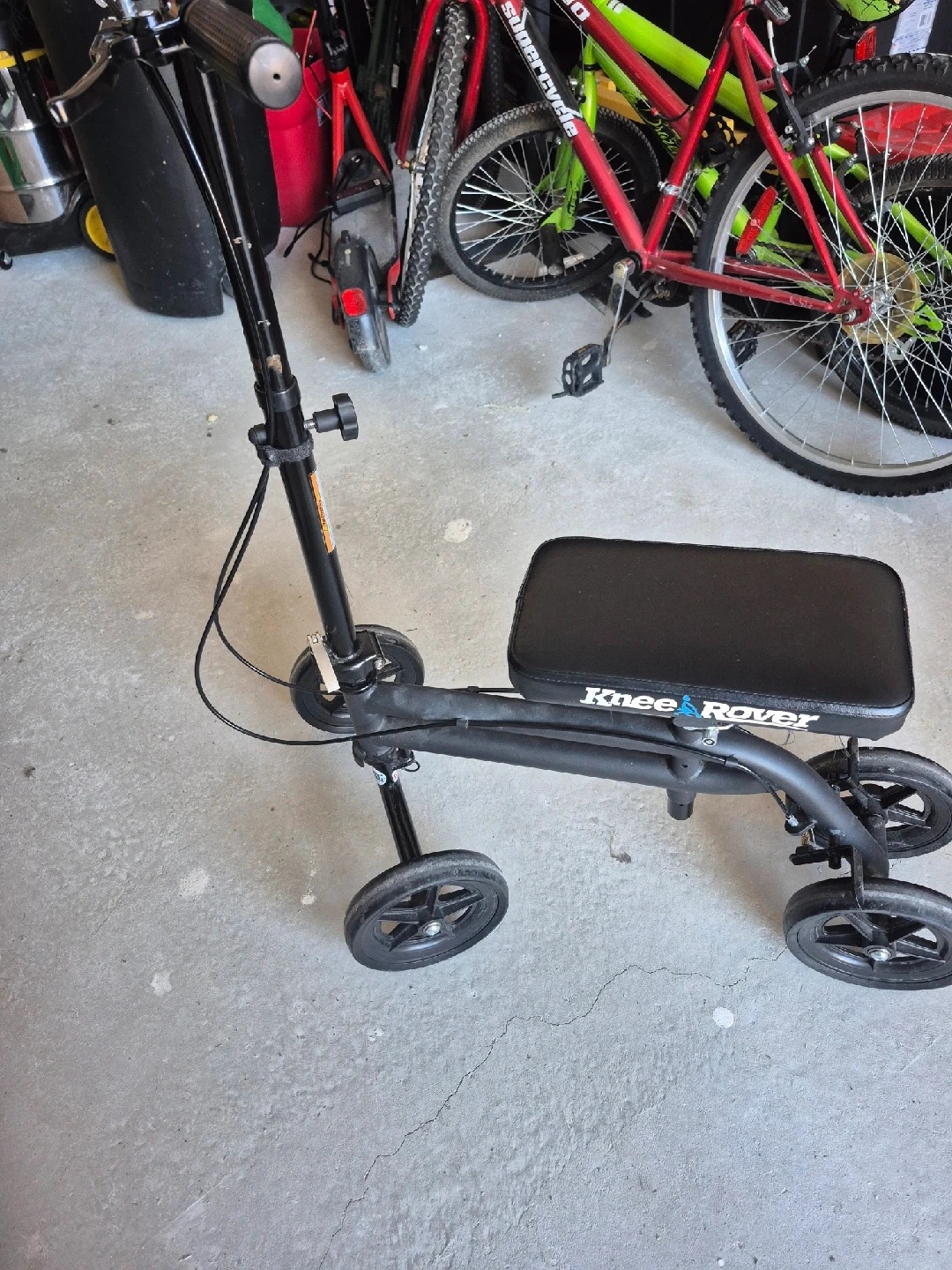 Selling a KneeRover knee walker in black. It's in great condition and ready to help you get around while recovering! It's a comfortable and stable alternative to crutches