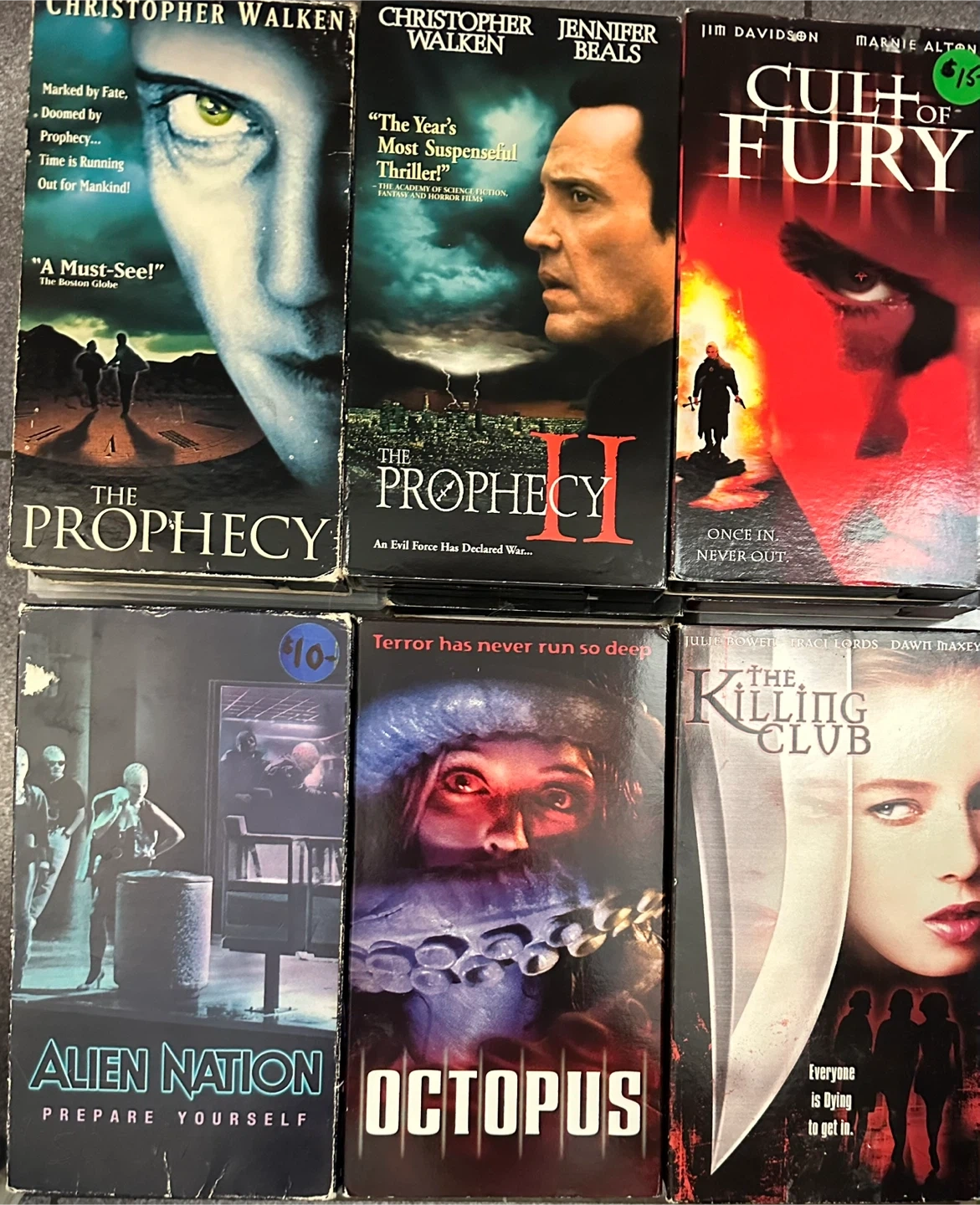 15Selling a collection of VHS horror movies! Titles include Earth vs. The Spider, Ripper Letter From Hell, Spirits, Spider Baby, Sweet Evil, The Mangler 2, Watchers, The Diary of Ellen Rimbauer, Witchcraft, The Calling, Manhunter, Maximum Overdrive, The Prophecy, and more! Great for collectors or anyone looking for a nostalgic scare