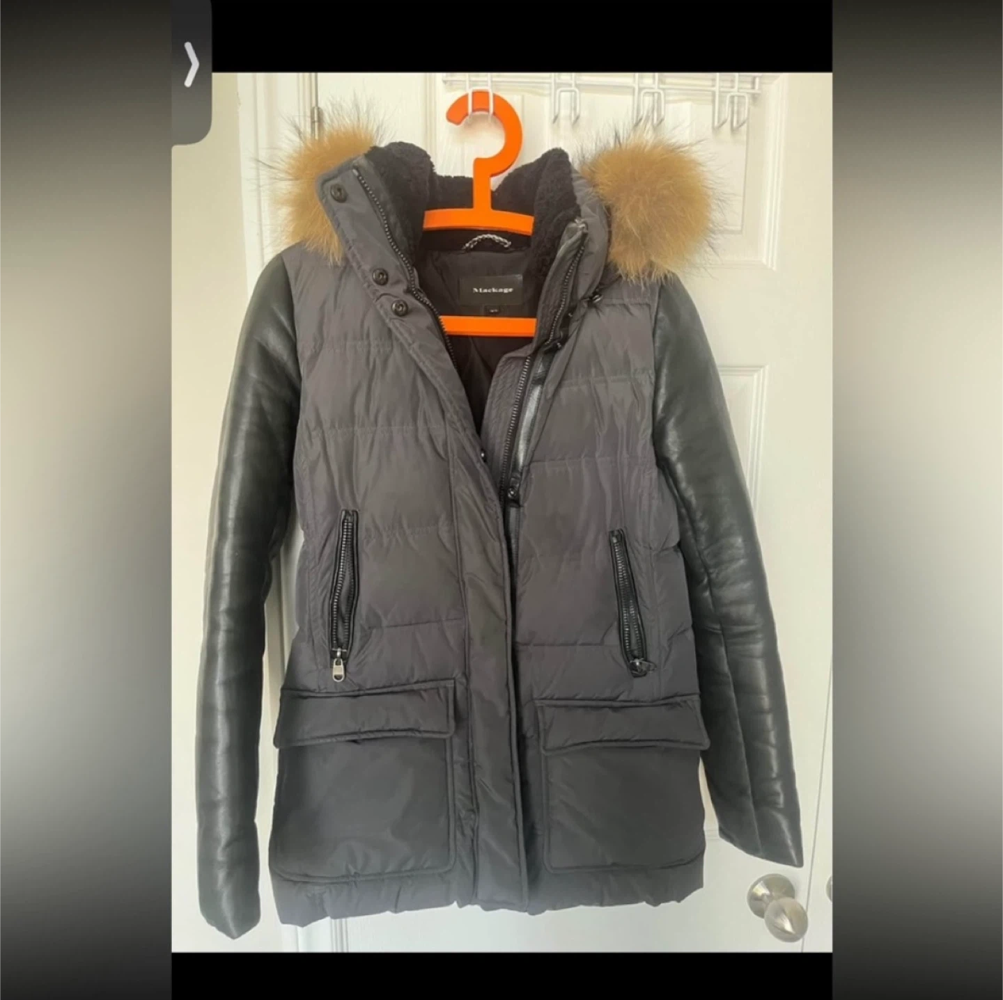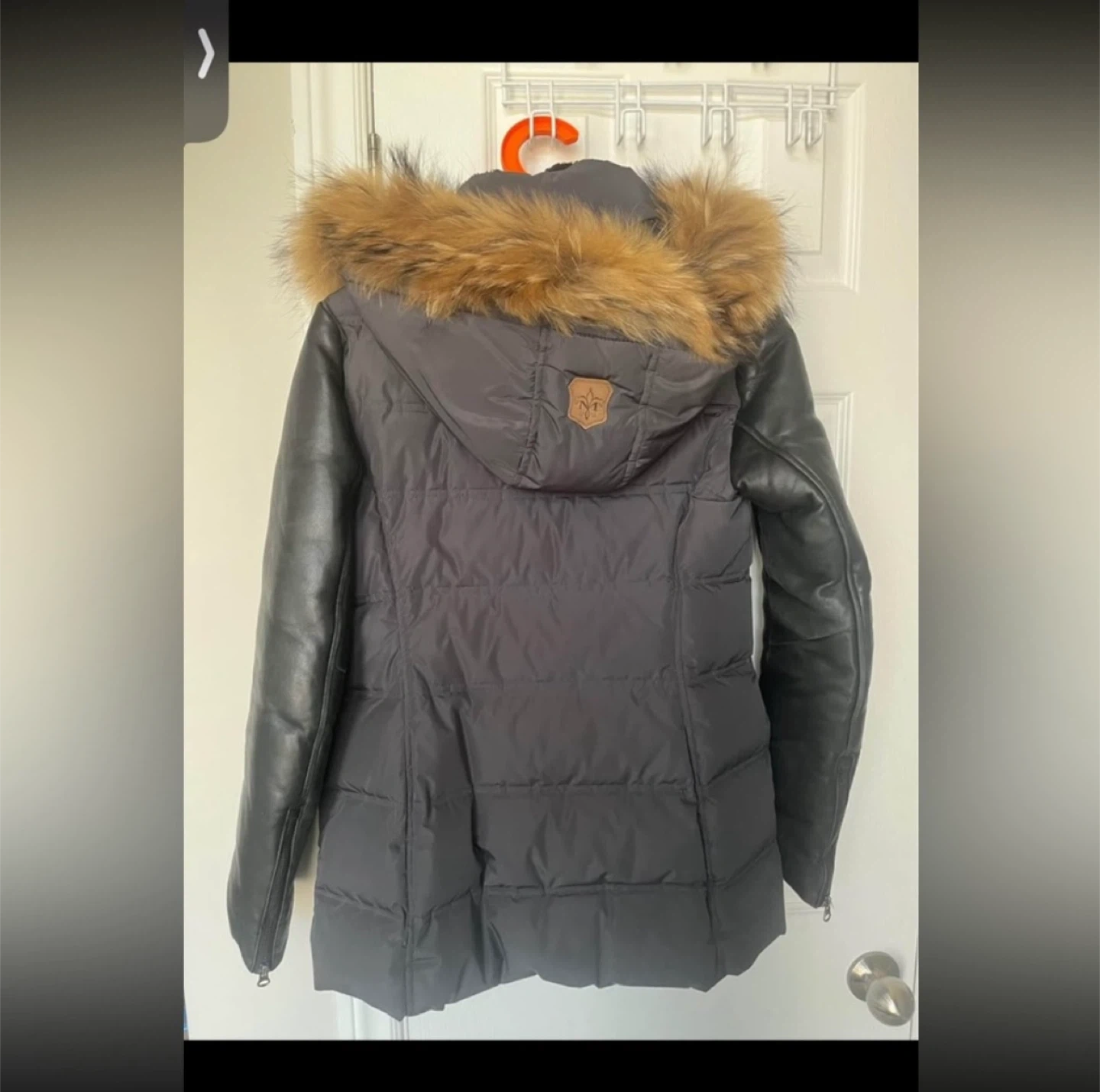 Great quality, super warm, perfect for winter, only a bit worn on the wrist area as shown in photo.
