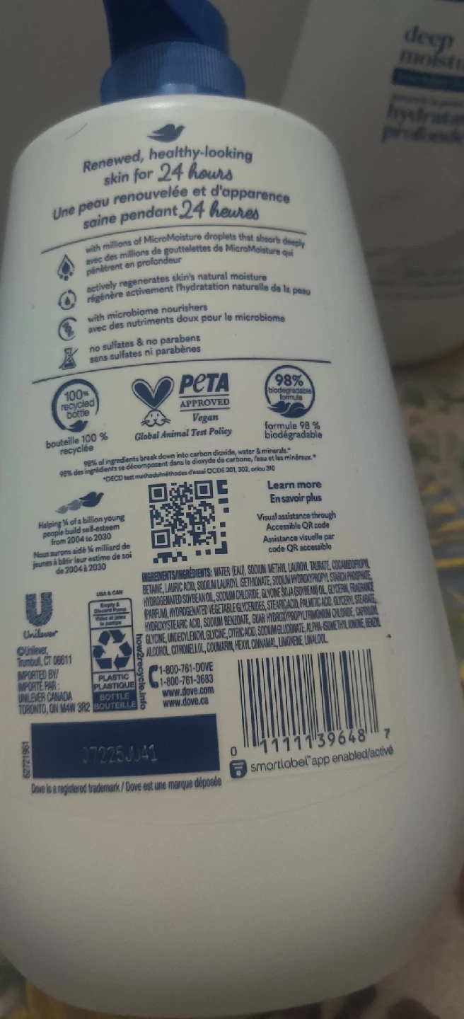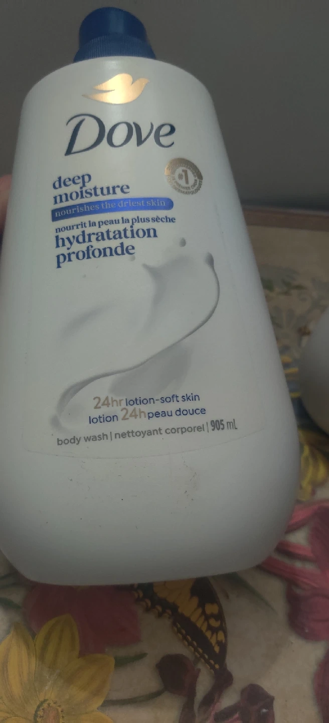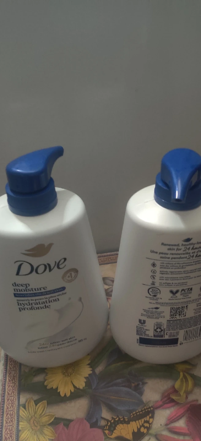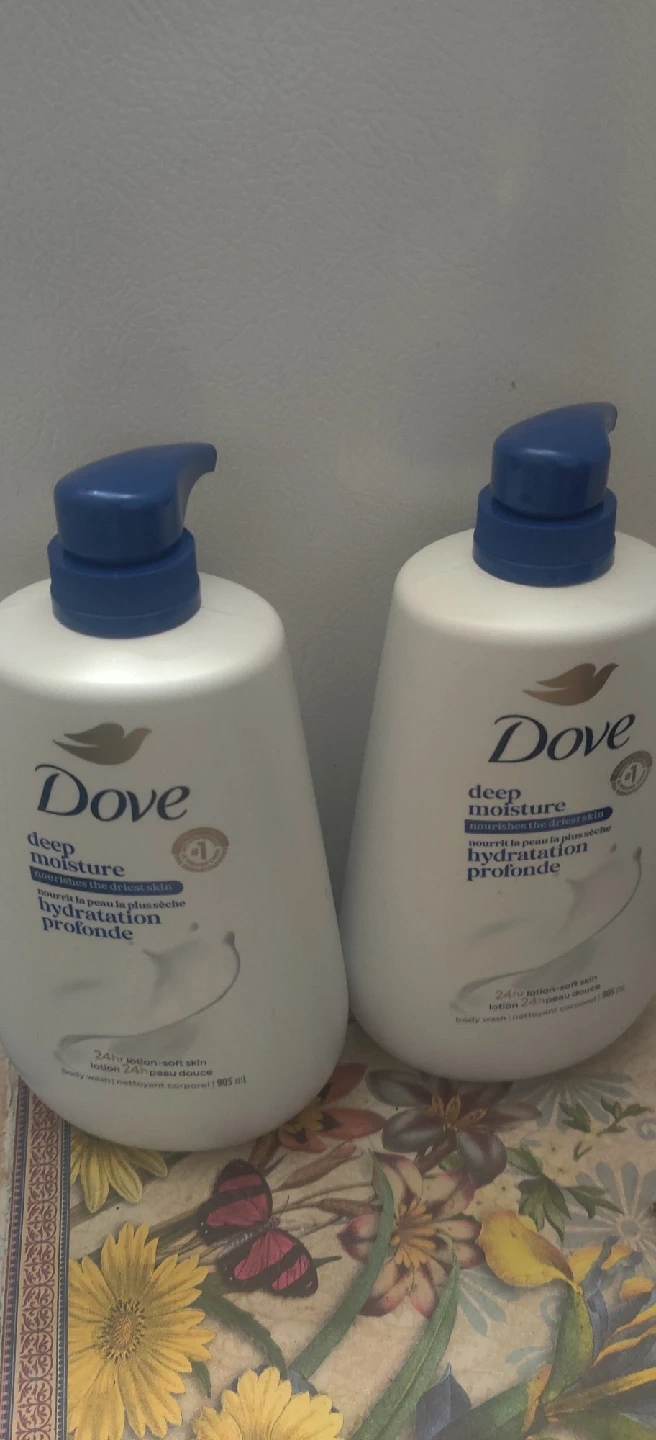 1000+Selling two bottles of Dove Deep Moisture body wash. Each bottle contains 905 mL of lotion-soft skin body wash, perfect for nourishing dry skin. It leaves your skin feeling renewed and healthy-looking for 24 hours