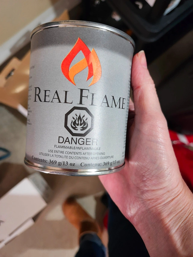 5Crackles like a real fire, can be used for indoor fireplaces with fake wood and outdoors in garden Terra Cotta mini fire pits. Box of 22 cans for $80 or $5 each can. Feel free to message if you have any questions!