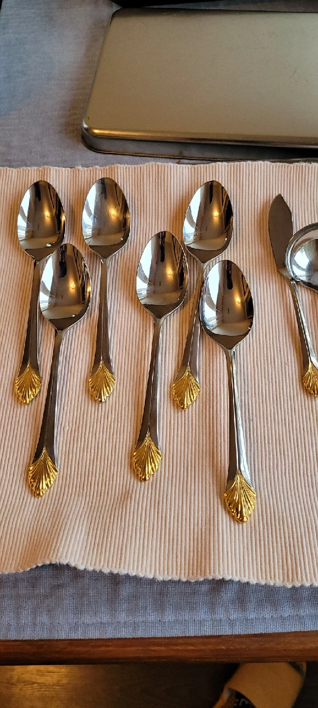 10Selling a silverware set with elegant gold accents. The set of Six includes spoons, forks, knives, and serving utensils. Perfect for adding a touch of class to your dining experience!Famous band Yamazaki! pick up at Yonge/Weldrick Road east.